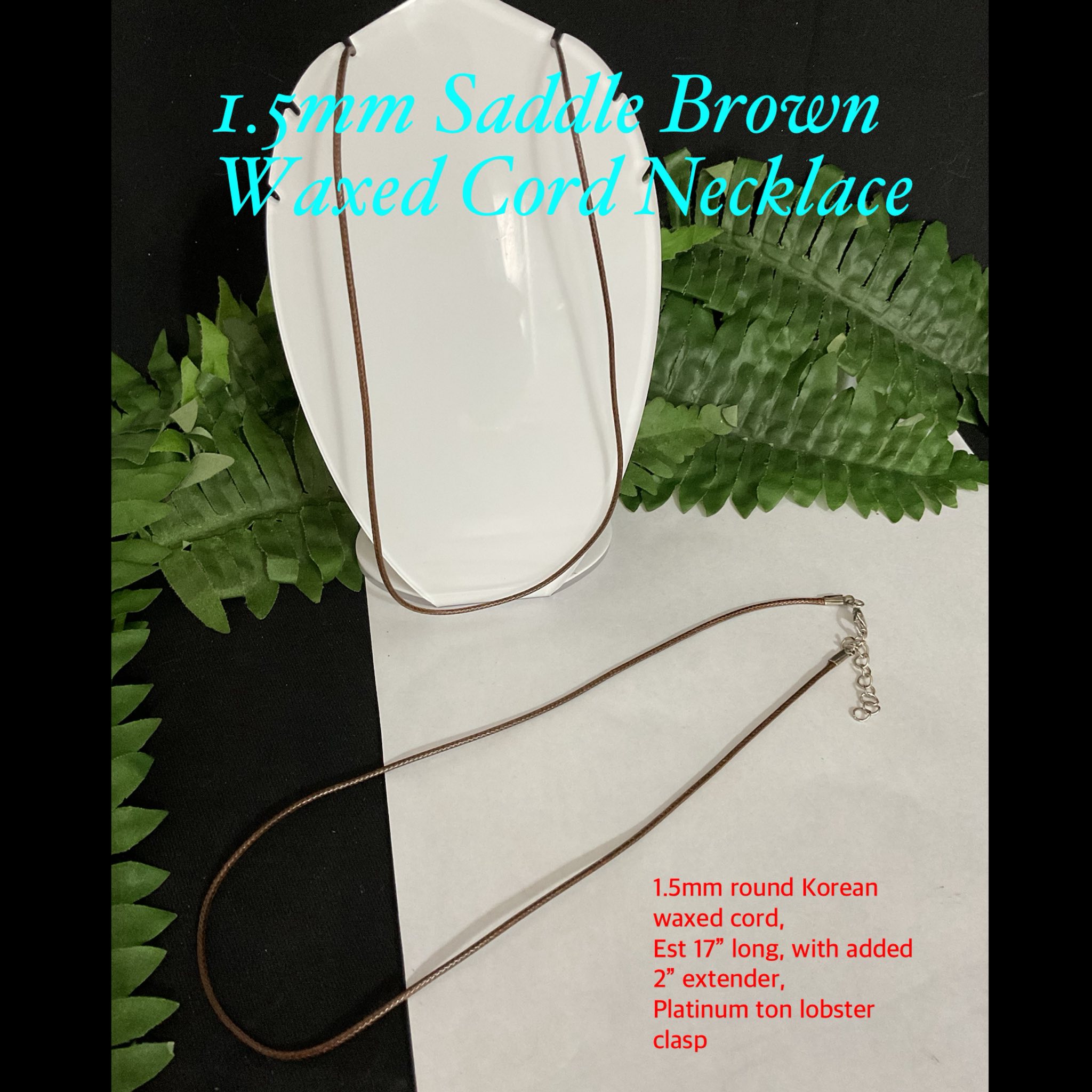 1.5mm Saddle Brown Waxed Cord Necklace (est 17″)