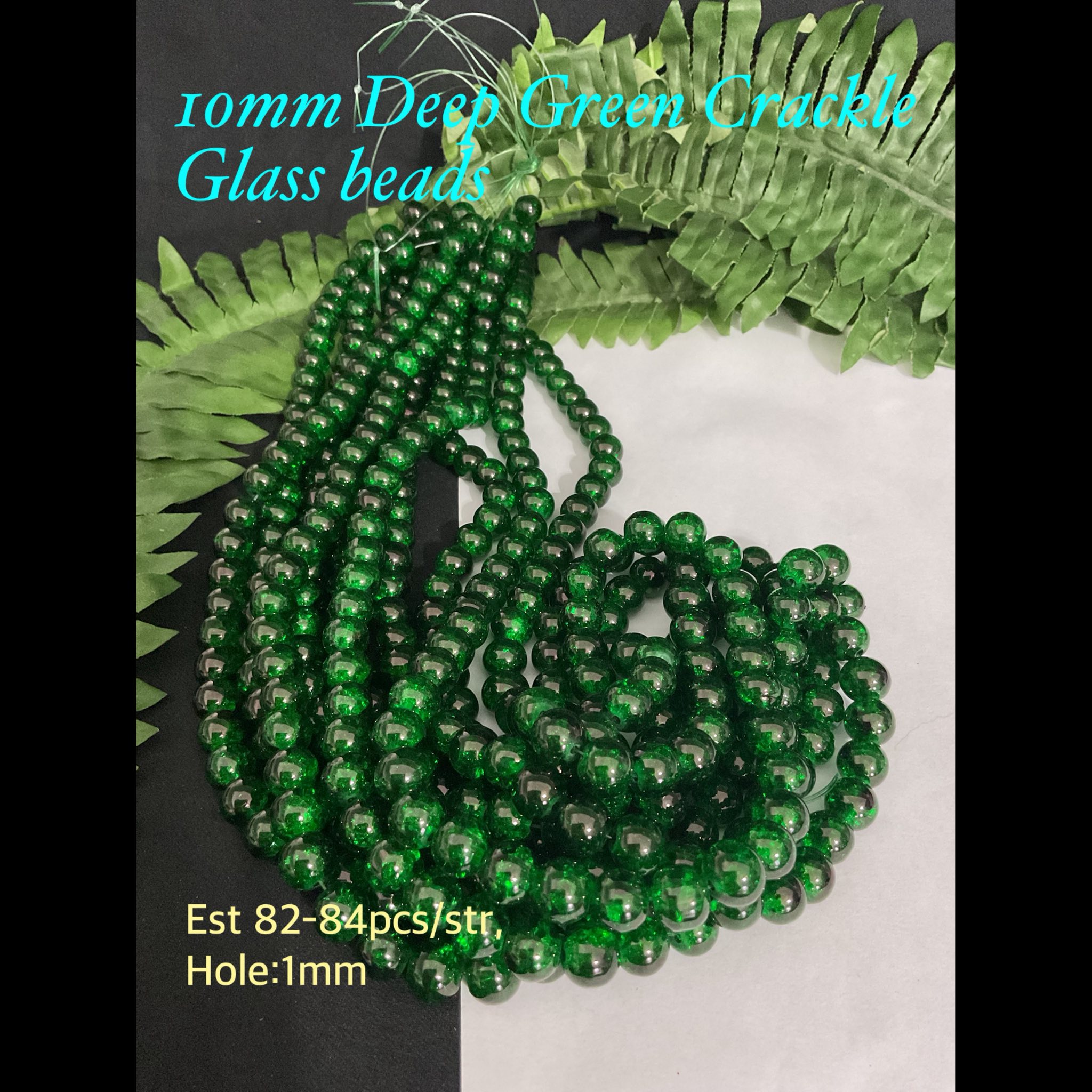 10mm Deep Green Crackle Glass beads (est 82-84pcs)