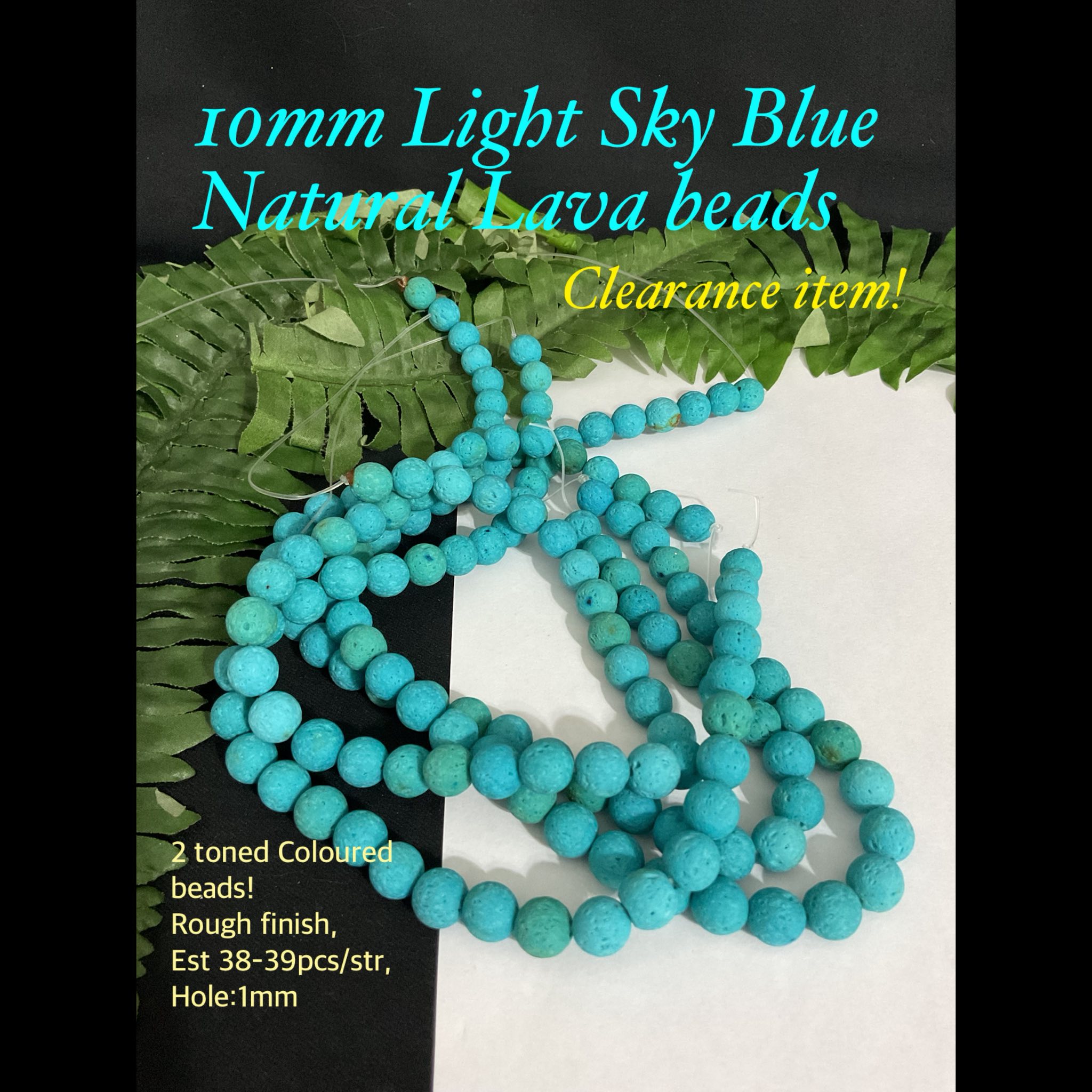 10mm Light Sky Blue Natural Lava beads (est 38-39pcs) 40% off!