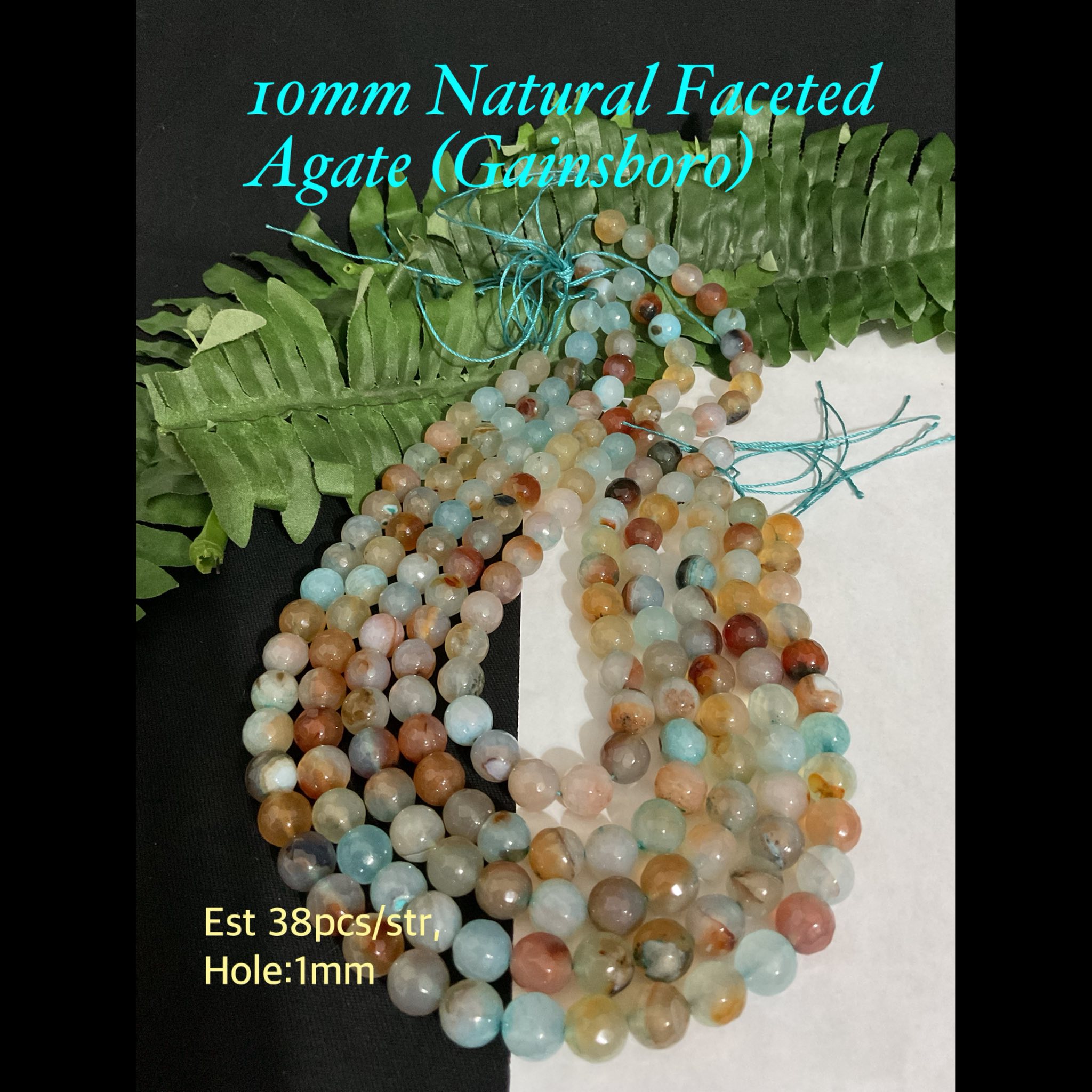 10mm Natural Faceted Agate beads (Gainsboro) (est 38pcs)