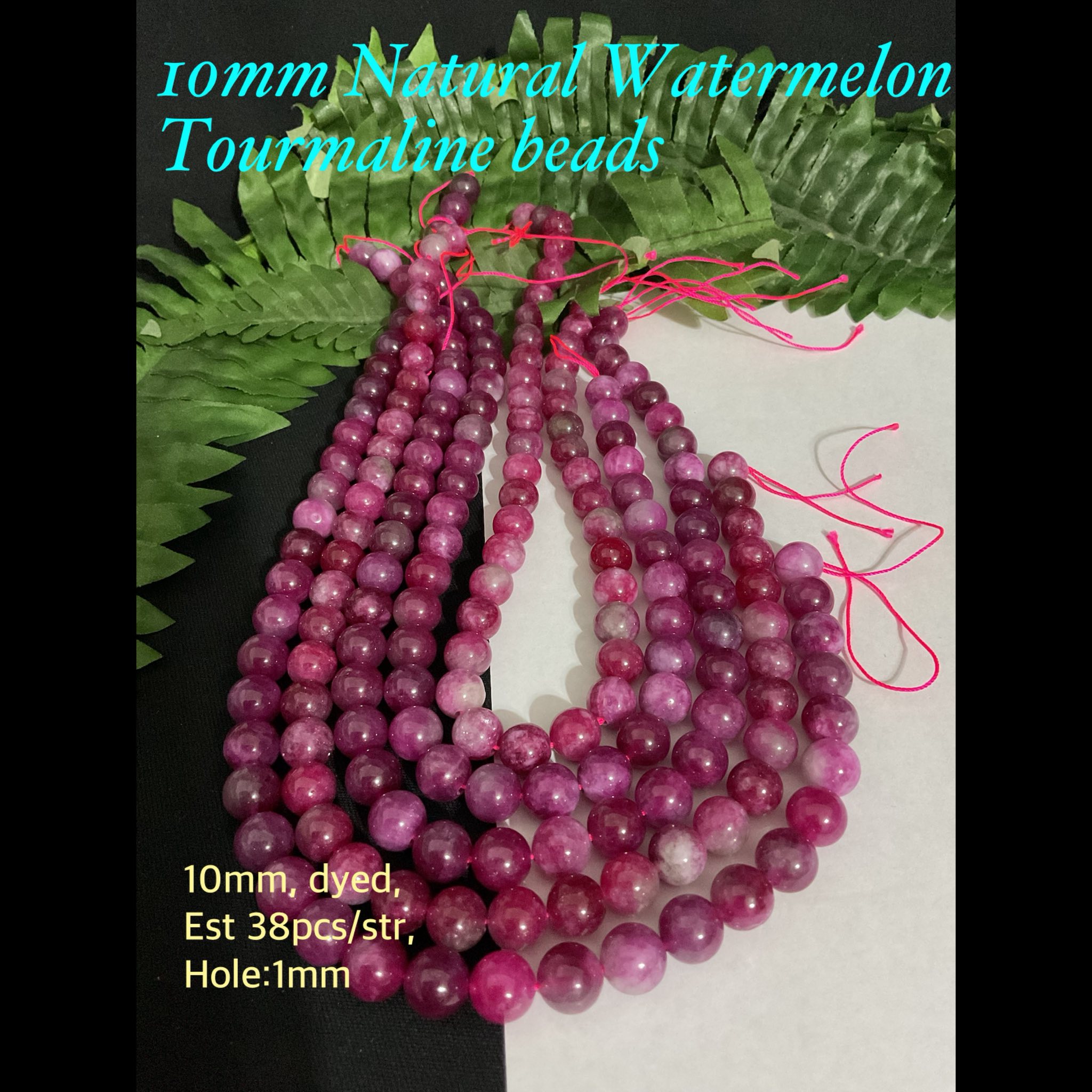 10mm Natural Watermelon Tourmaline beads (est 38pcs)