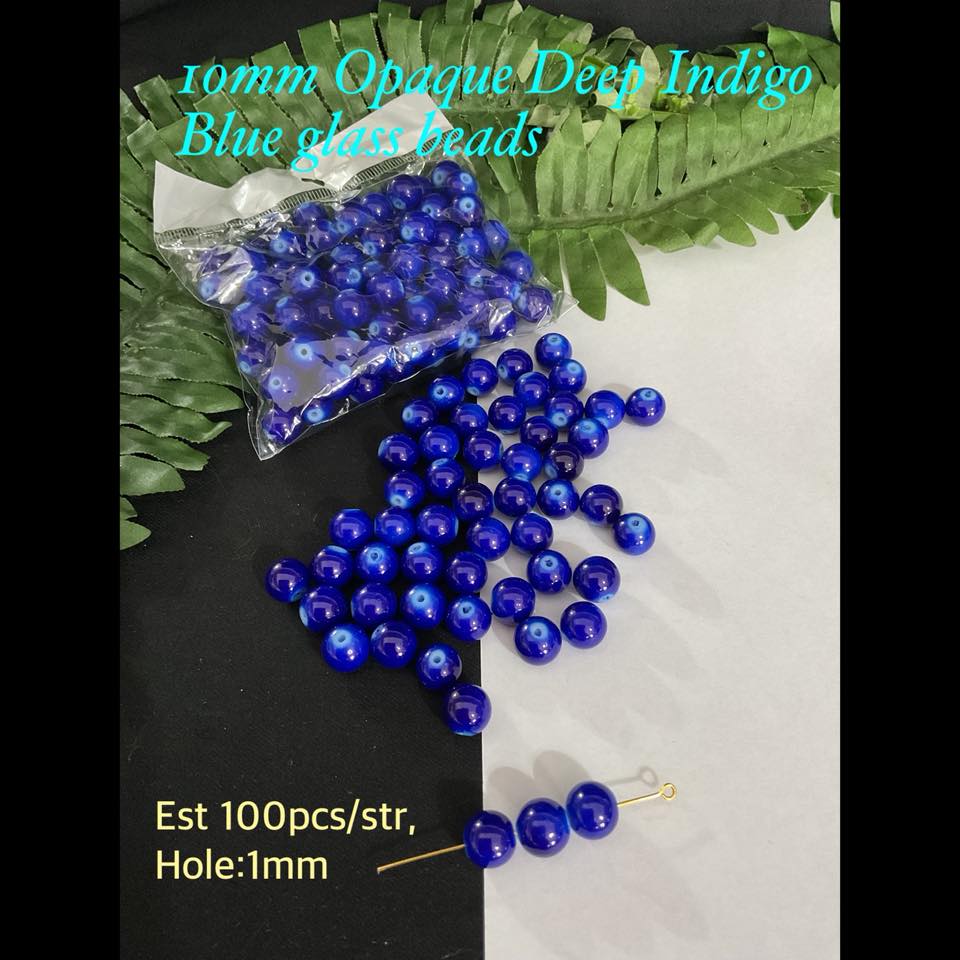 10mm Opaque Deep Indigo Blue glass beads (est 100pcs)