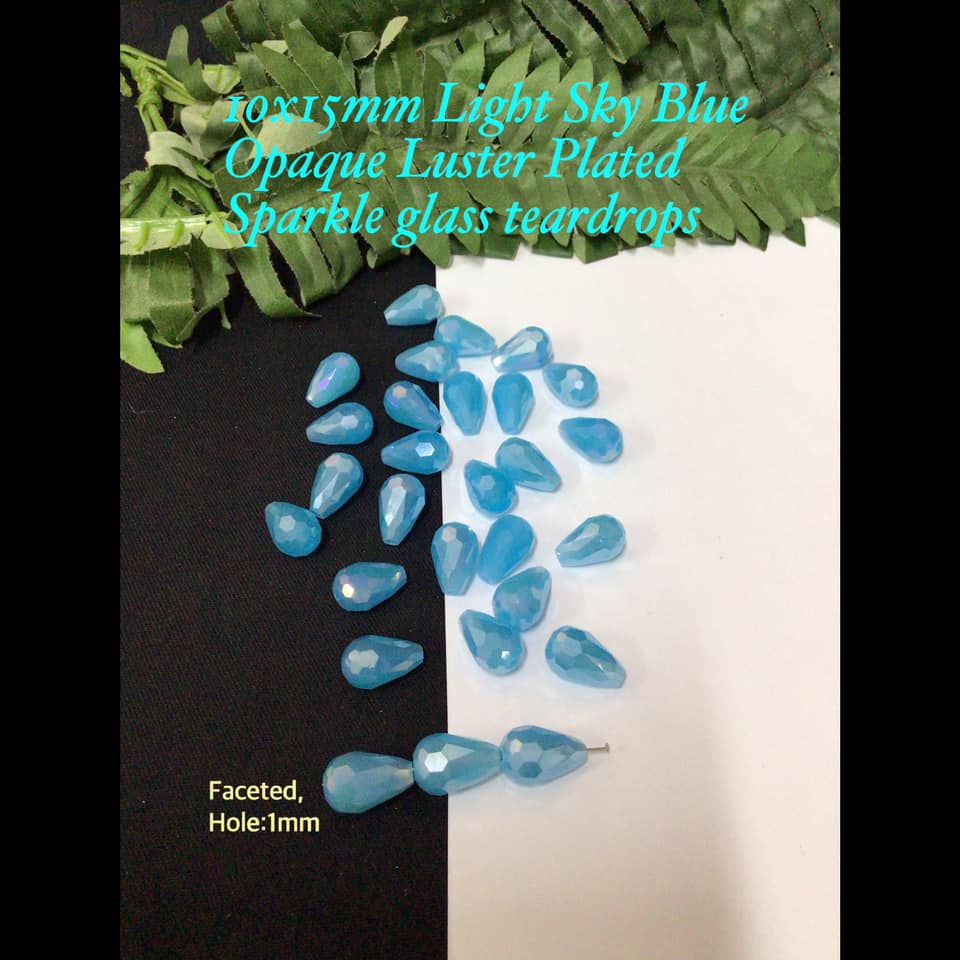 10x15mm Light Sky Blue Luster Plated Sparkle glass teardrops (8pcs)