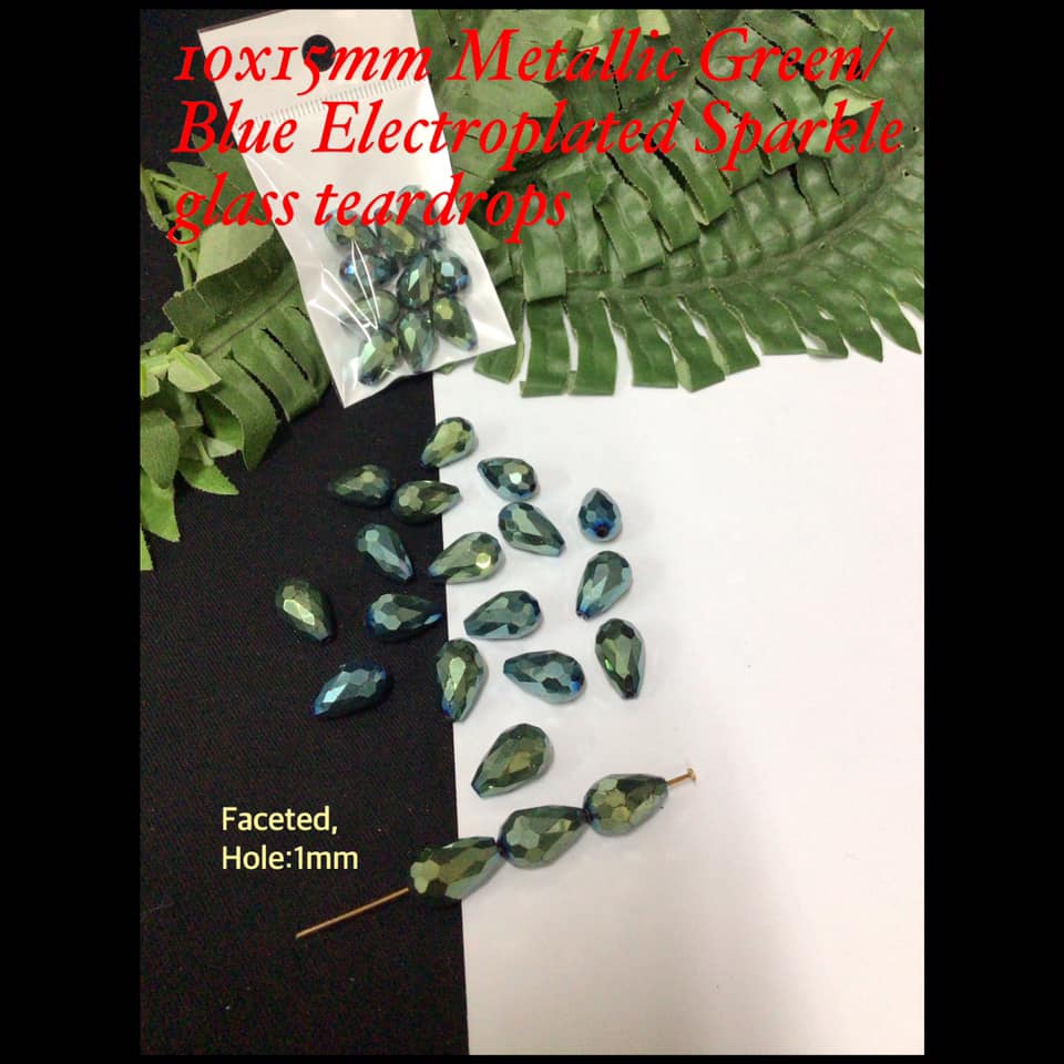 10x15mm Metallic Green/Blue Electroplated Sparkle glass teardrops (10pcs)