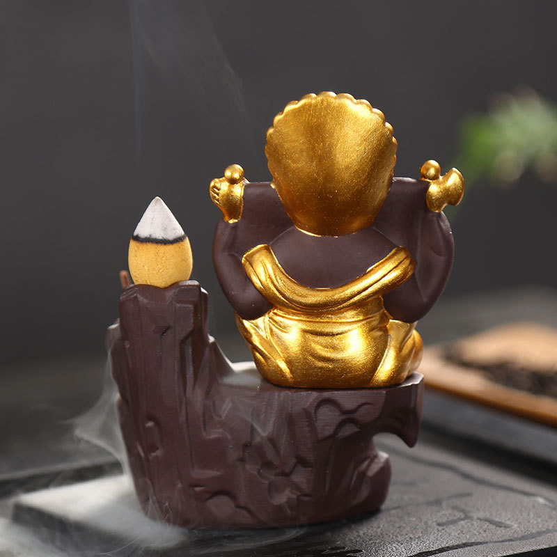 11cm Ganesha Clay Backflow Incense Burner (gold)