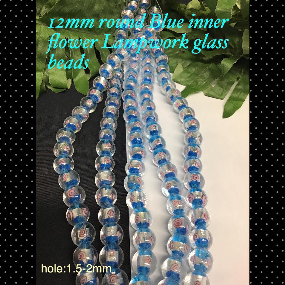 12mm Blue/ Flower Inner Twist Lampwork round glass beads (5pcs)