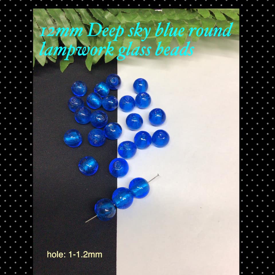 12mm Deep Sky blue round gold sand Lampwork beads (6pcs)