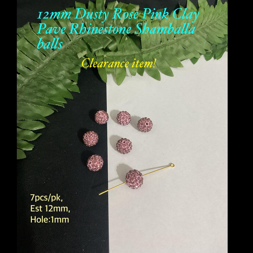 12mm Dusty Rose Pink Clay Pave Rhinestone Shamballa balls (7pcs)