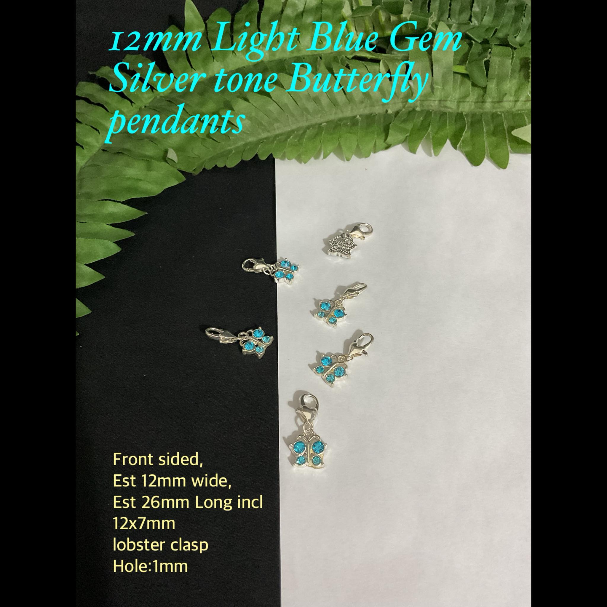 12mm Light Blue Gem Silver Tone Butterfly pendants
