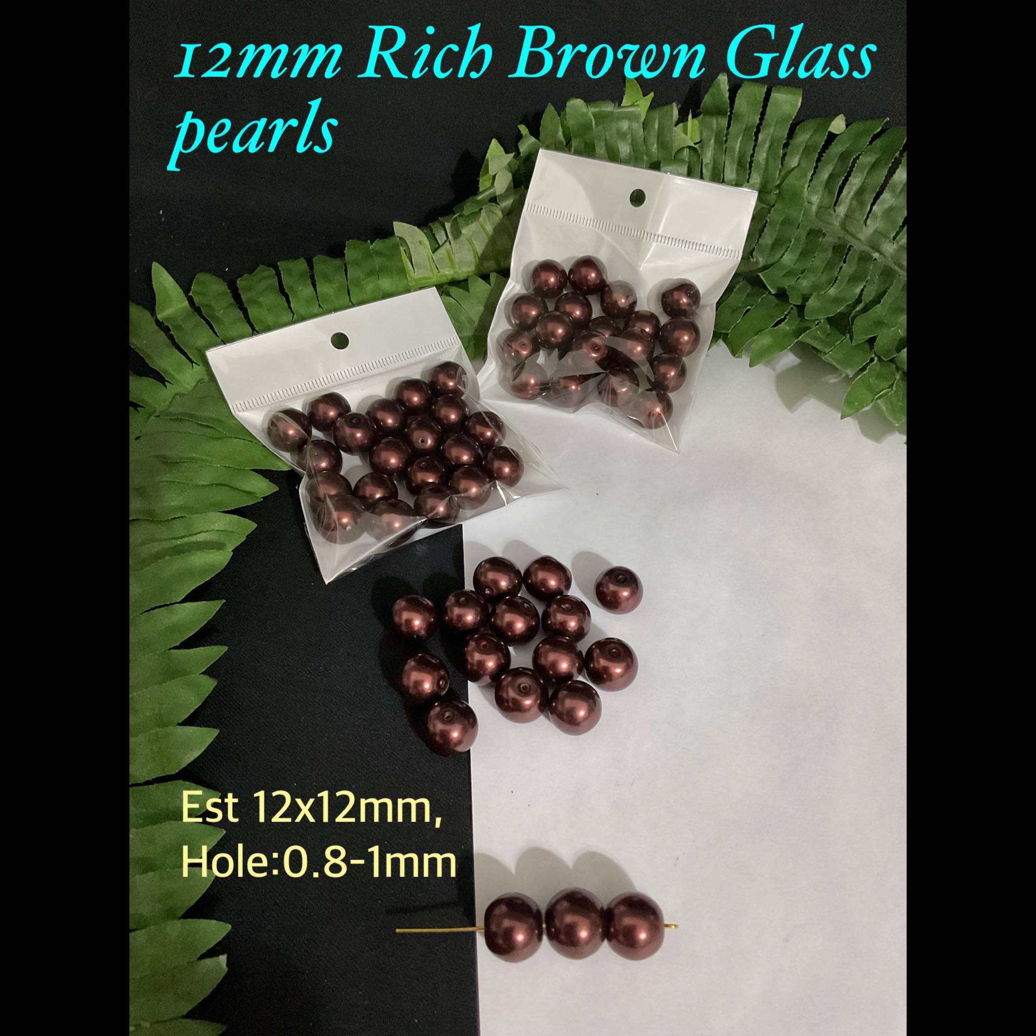 12mm Rich Brown Glass pearls (est 20pcs)