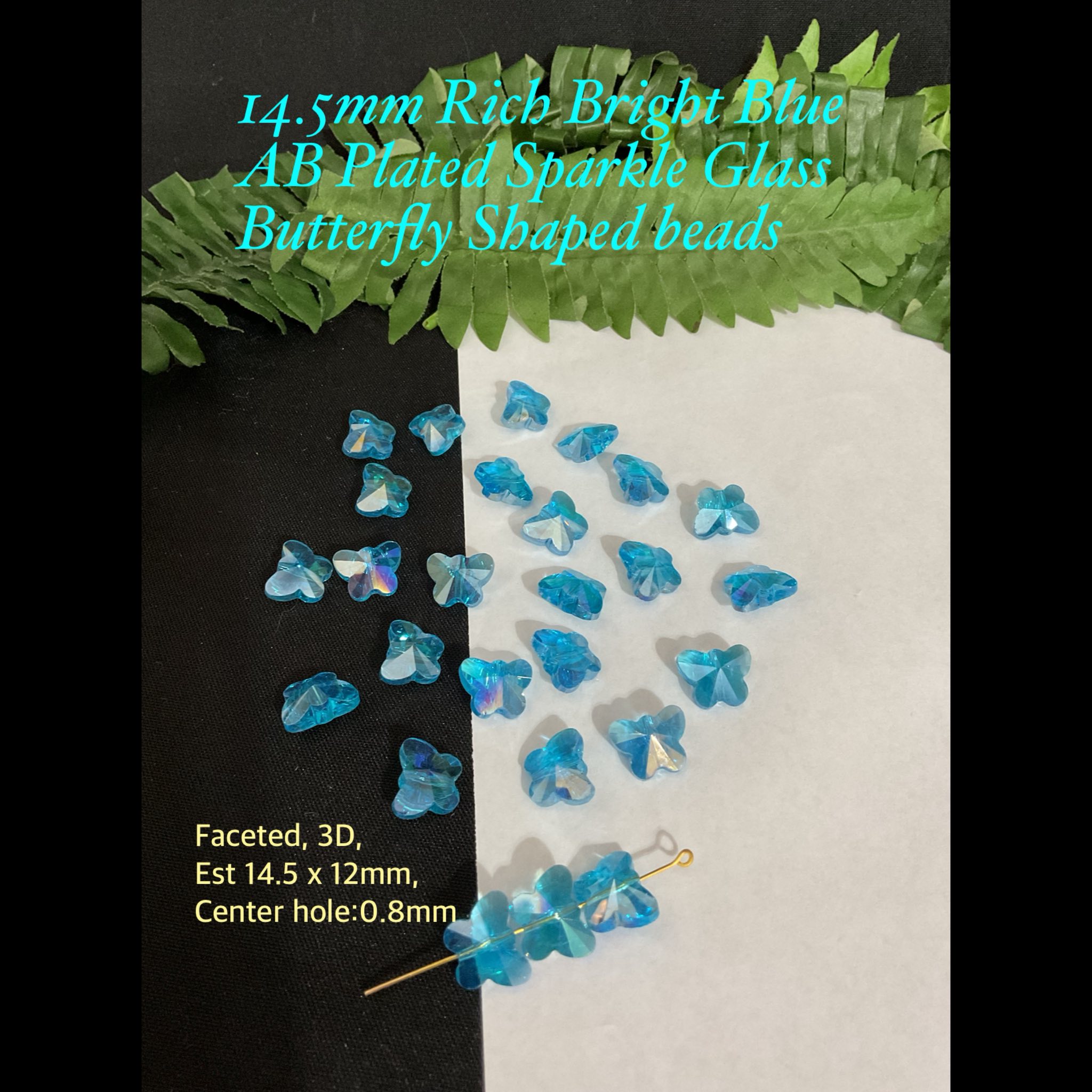 14.5mm Rich Bright Blue AB Plated Butterfly Shaped Sparkle glass beads (4pcs/pk)