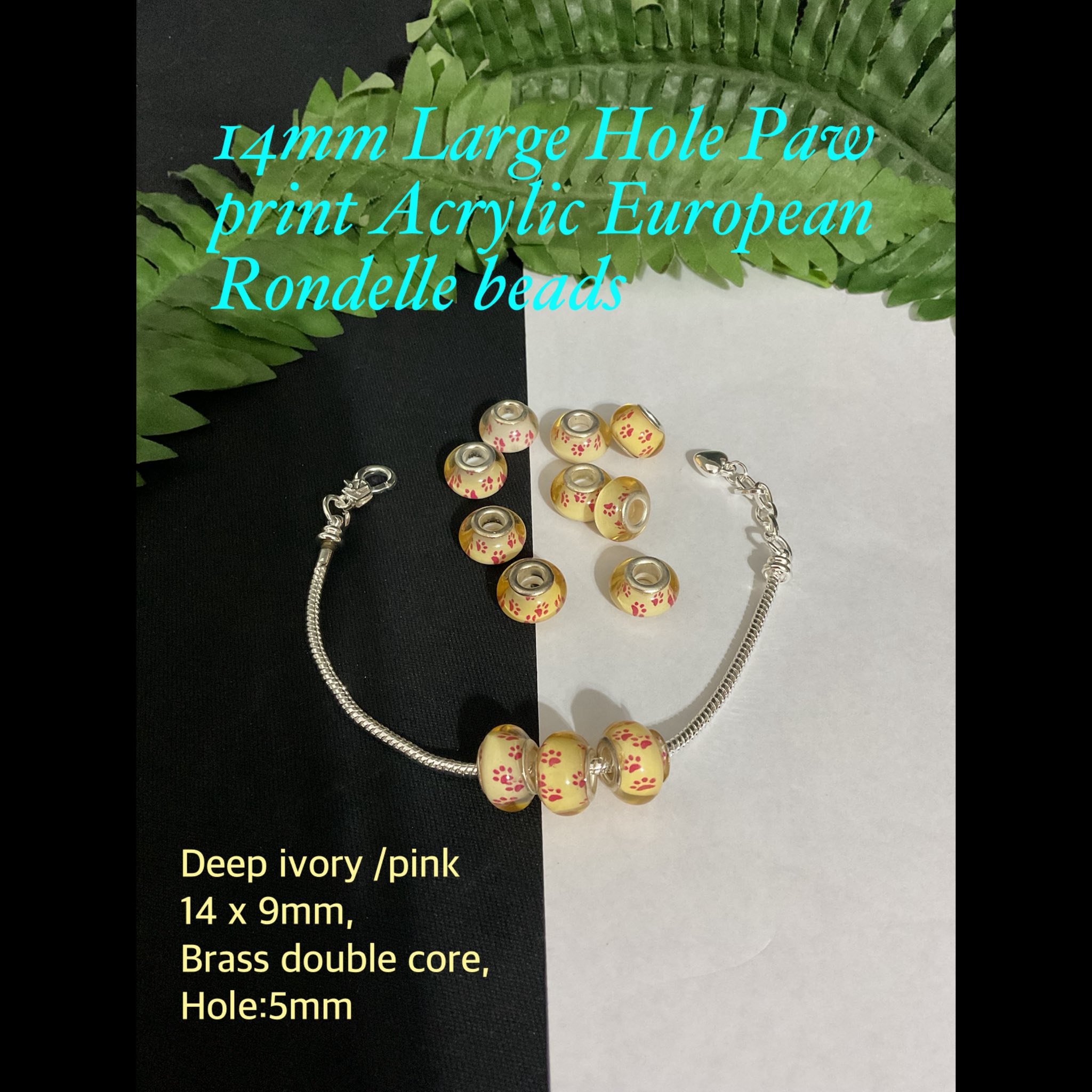 14mm Large Hole paw Print Acrylic European Rondelle beads (deep ivory/pink)