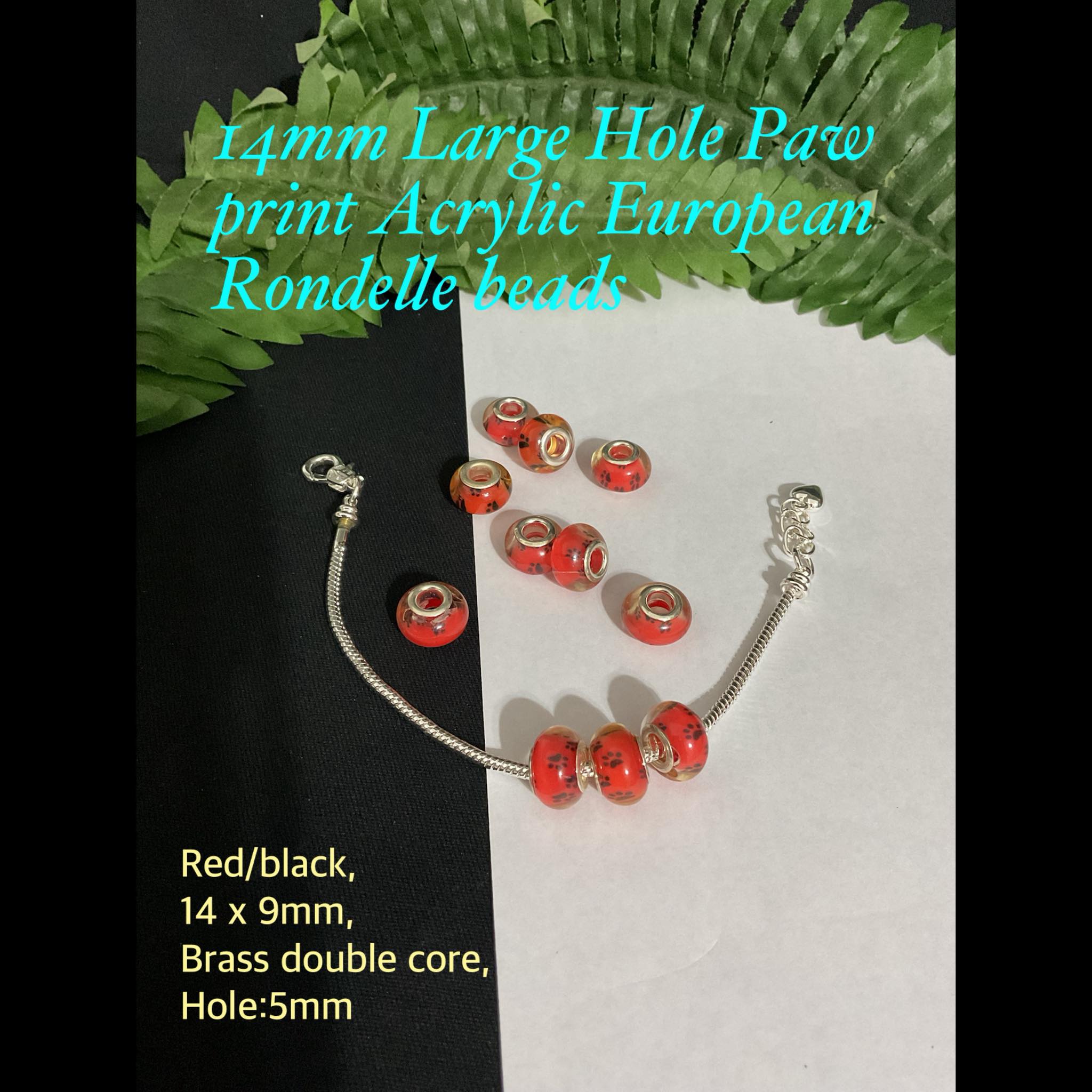 14mm Large Hole paw Print Acrylic European Rondelle beads (red/black)