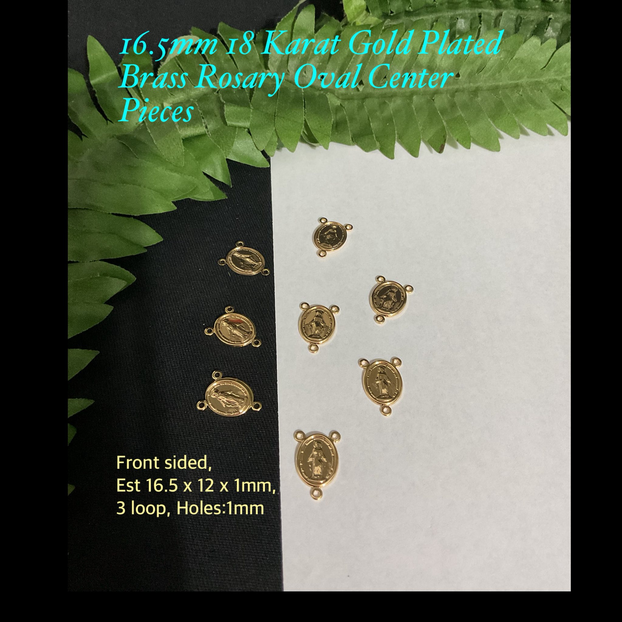 16.5mm 18 Karat Gold Plated Brass Rosary Oval Centerpieces
