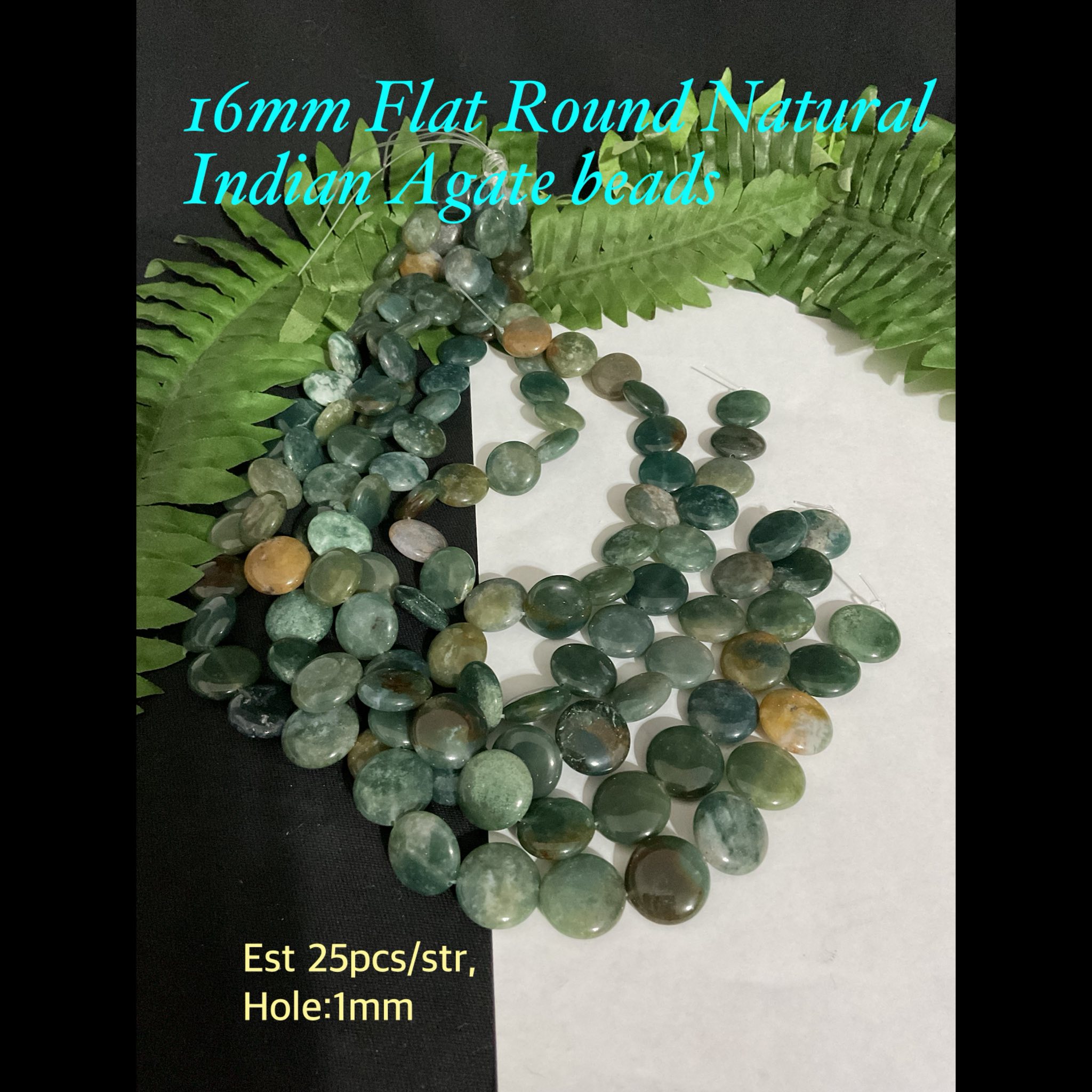 16mm Flat Round Natural Indian Agate beads (est 25pcs)