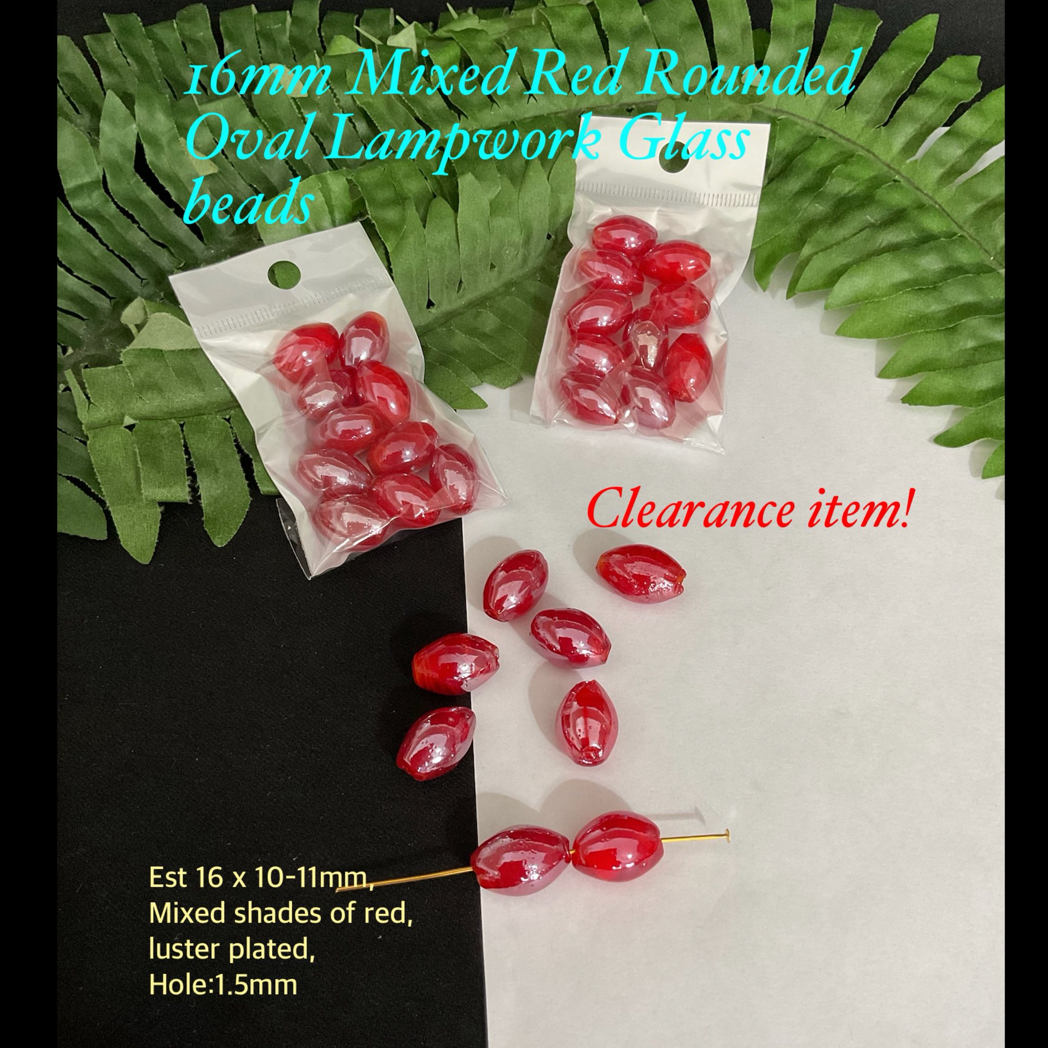 16mm Mixed Red Rounded Oval Lampwork Glass beads (10pcs)