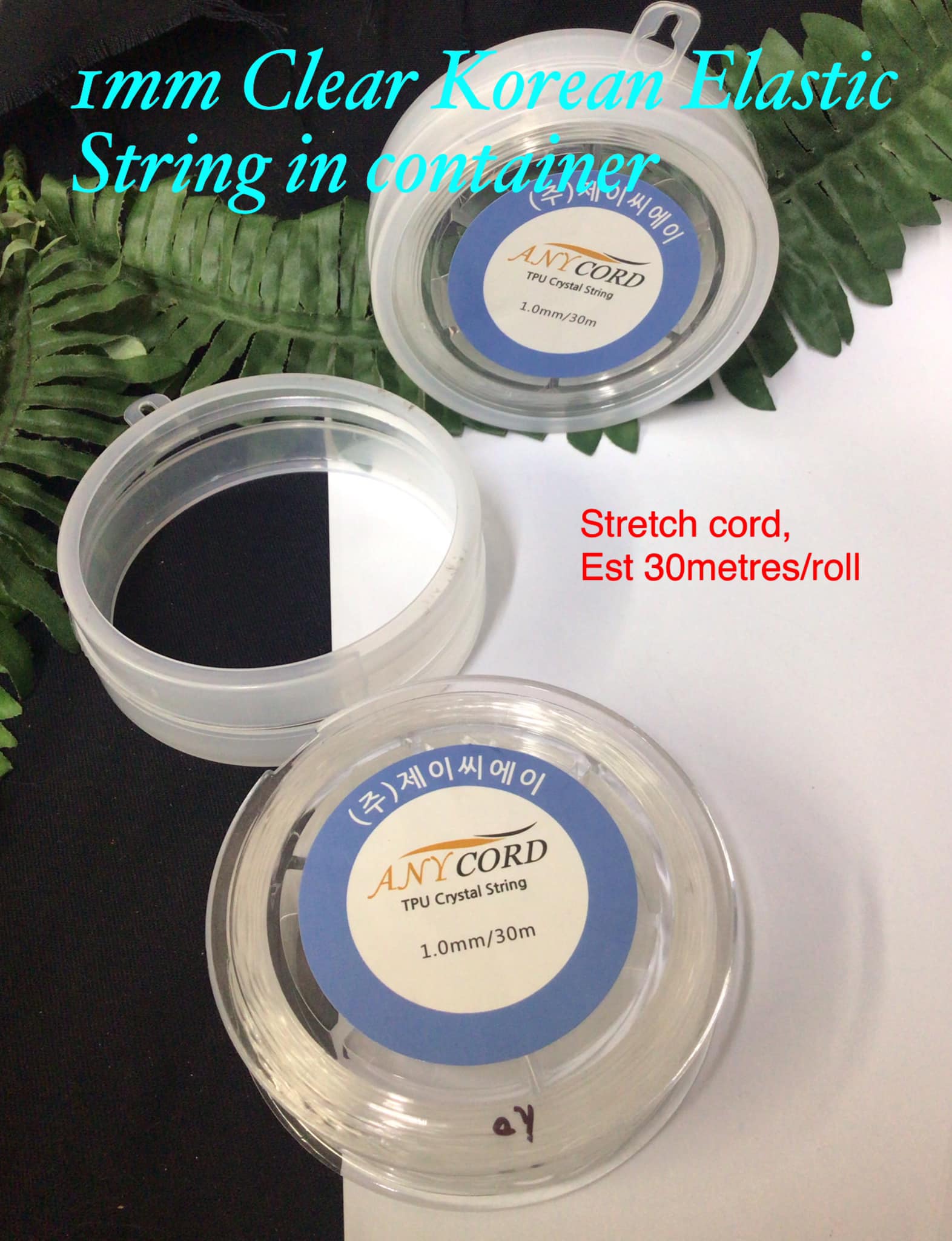 1mm Clear Korean Elastic string in container/roll protector (est 30metres)