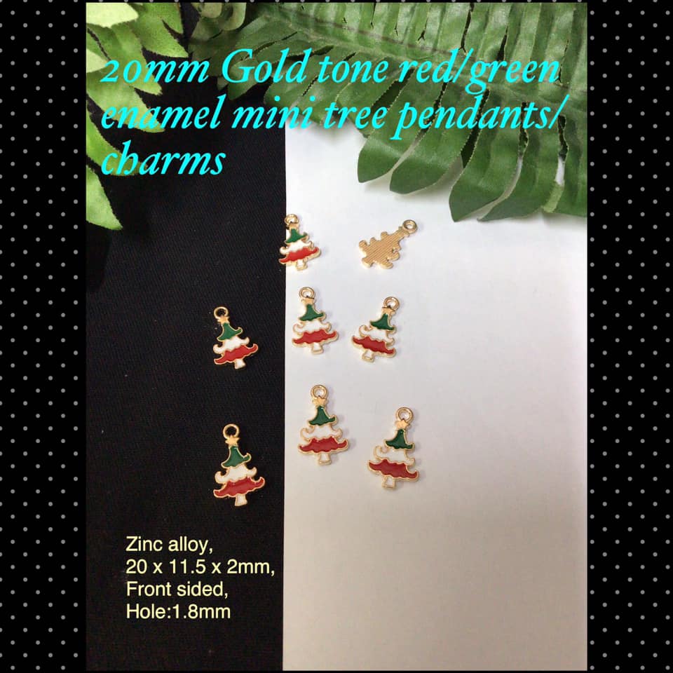 20mm Gold tone red/green enamel mini tree charms (4pcs) 20% off!