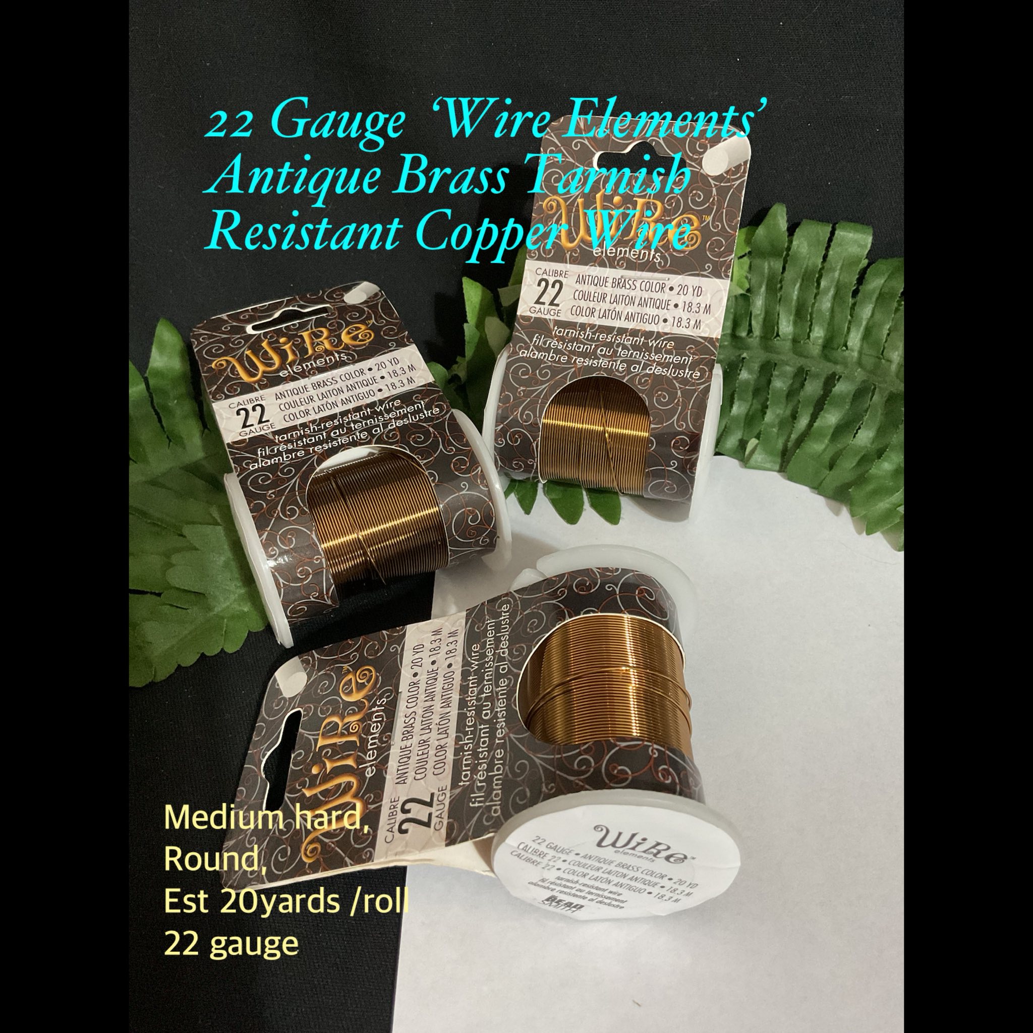 22gauge ‘Wire Elements’ Antique Brass tone Tarnish Resistant Copper wire (est 20yards)