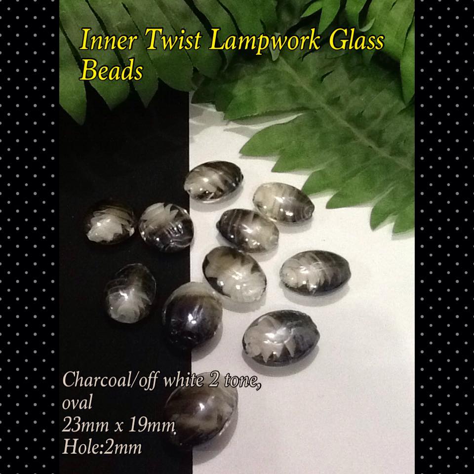 23-25mm Charcoal/White Inner twist Lamp work glass beads (6pcs)