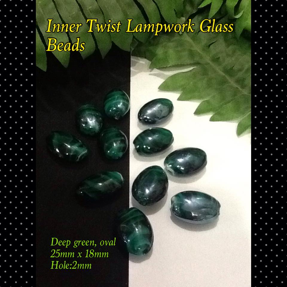 23-25mm Deep Green Oval Shaped Inner Twist Lamp work Glass Beads (8pcs)