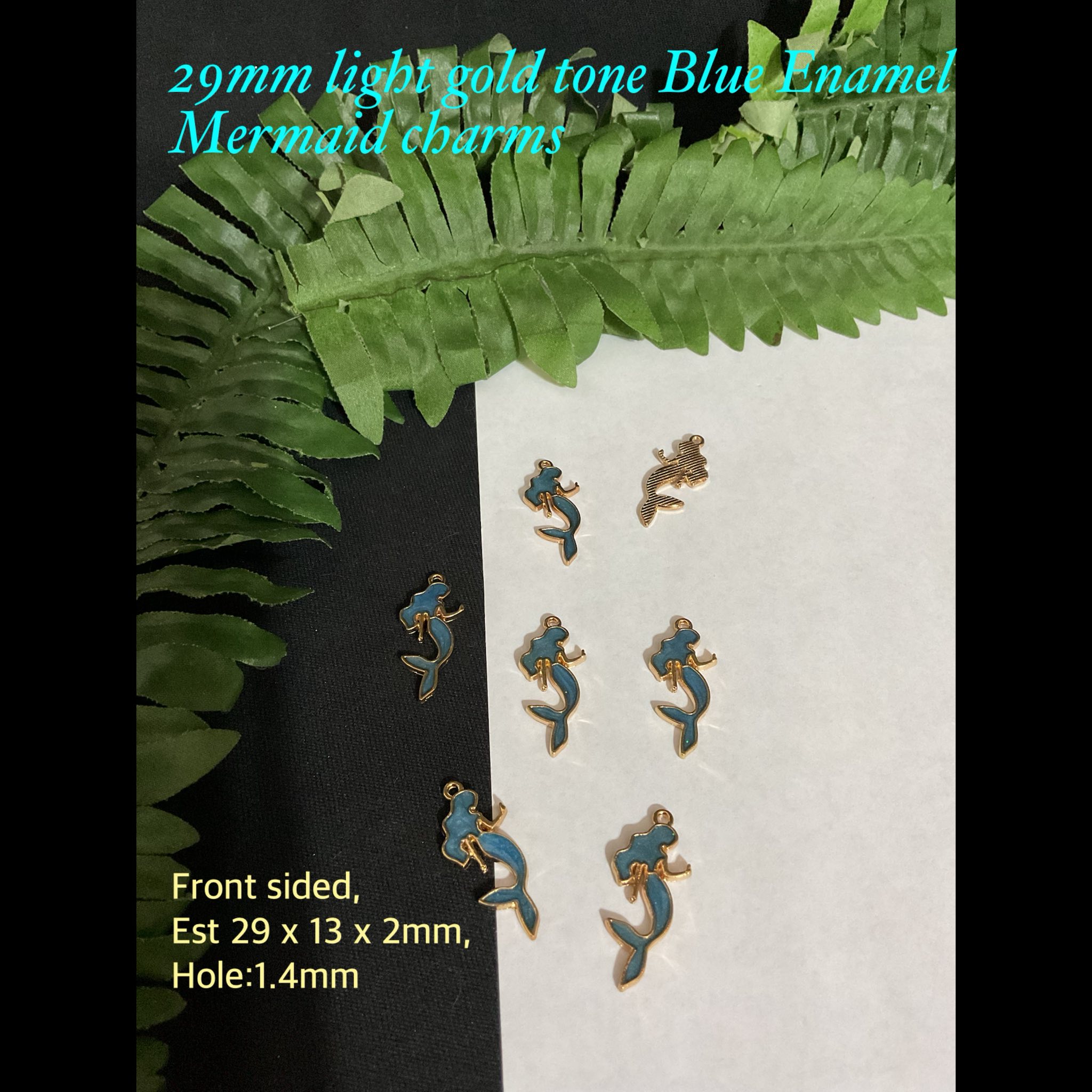 29mm Light Gold Tone Blue Enamel Mermaid Charms (3pcs)