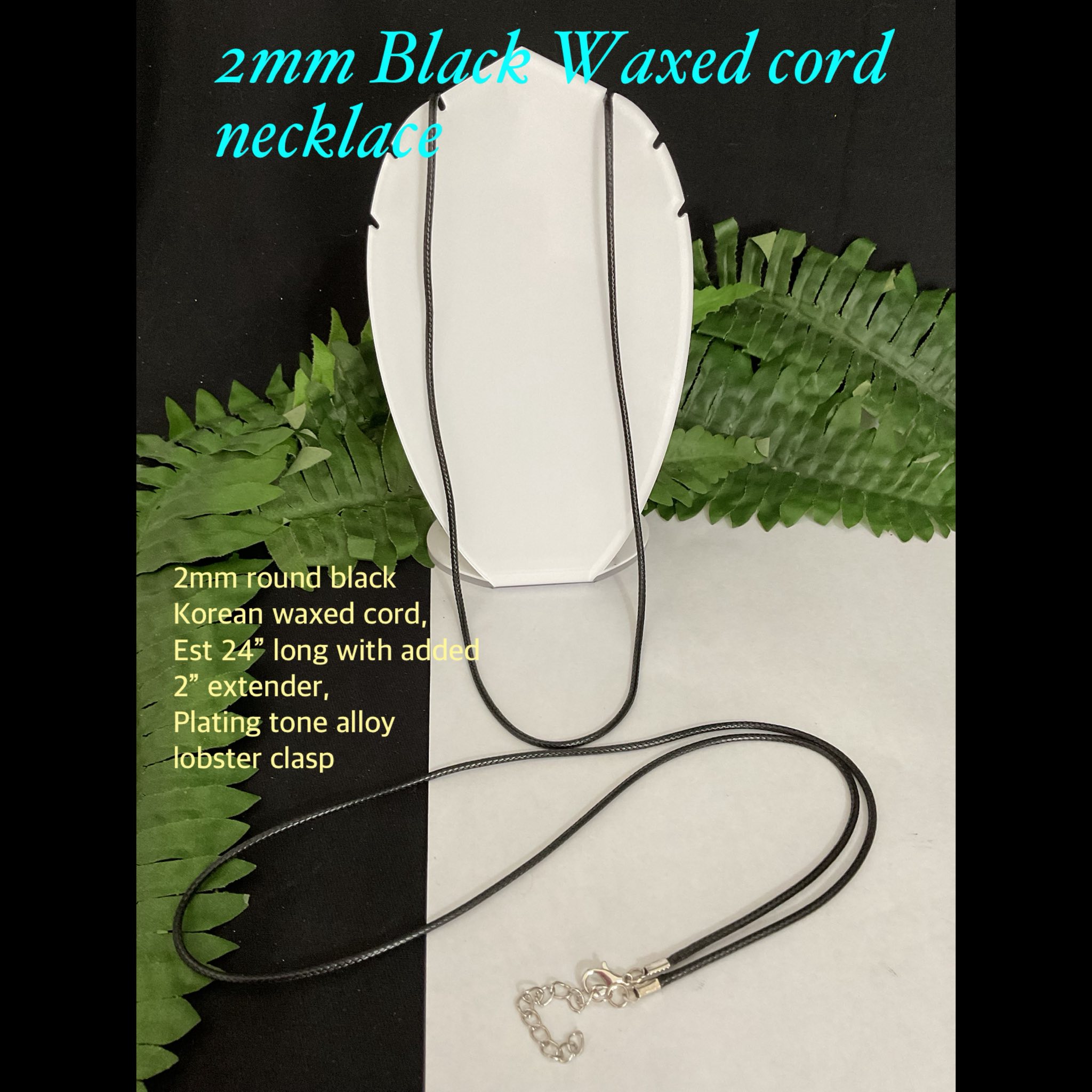 2mm Black Waxed Cord Necklace (est 24″)