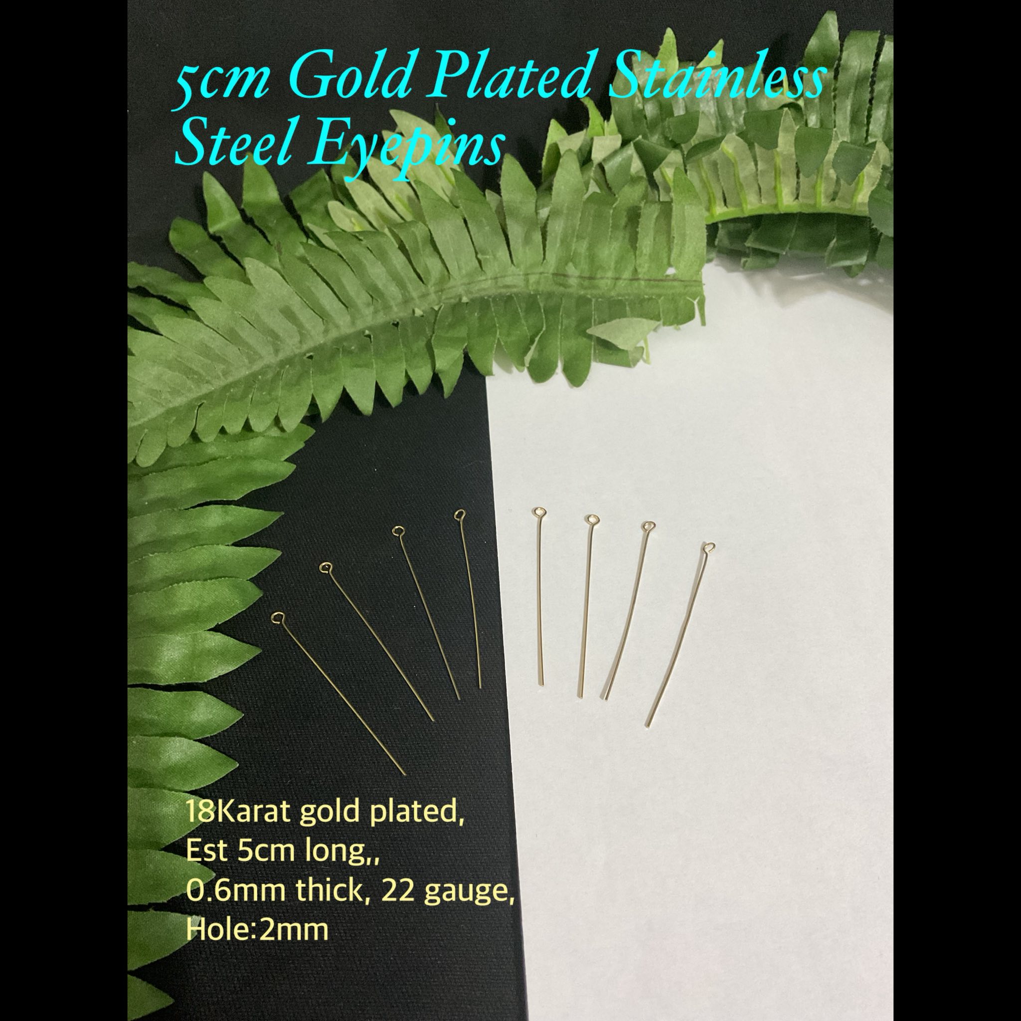 304 5cm Gold Plated Stainless Steel Eyepins (est 10pcs)
