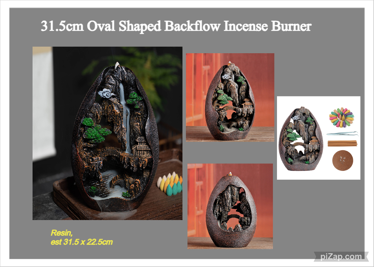 31.5cm Oval Shaped Resin Fountain/Mini House Backflow Incense Burner