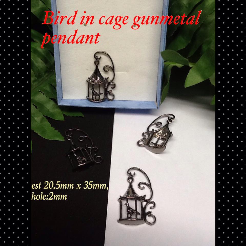 35mm Gun Metal Tone Bird in Cage Pendant