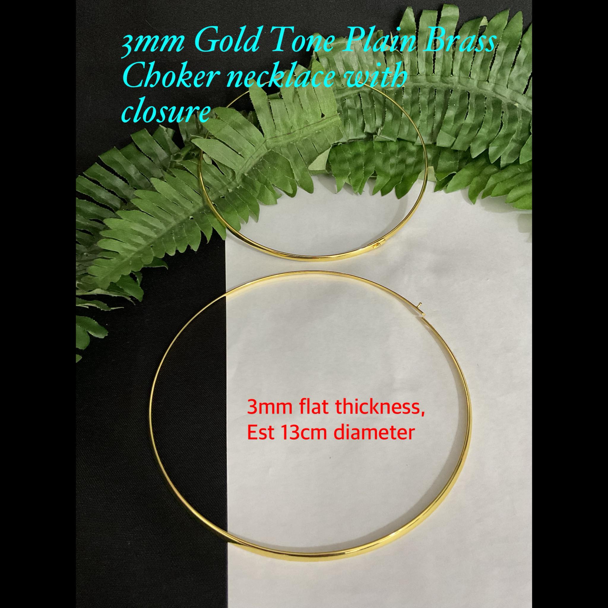 3mm Gold plain brass choker necklace with closure