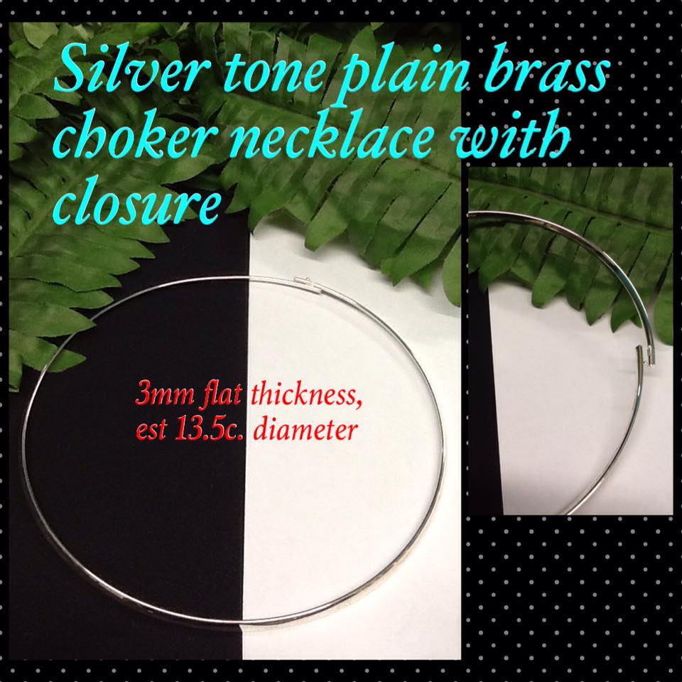 3mm Silver tone plain brass choker necklace with closure
