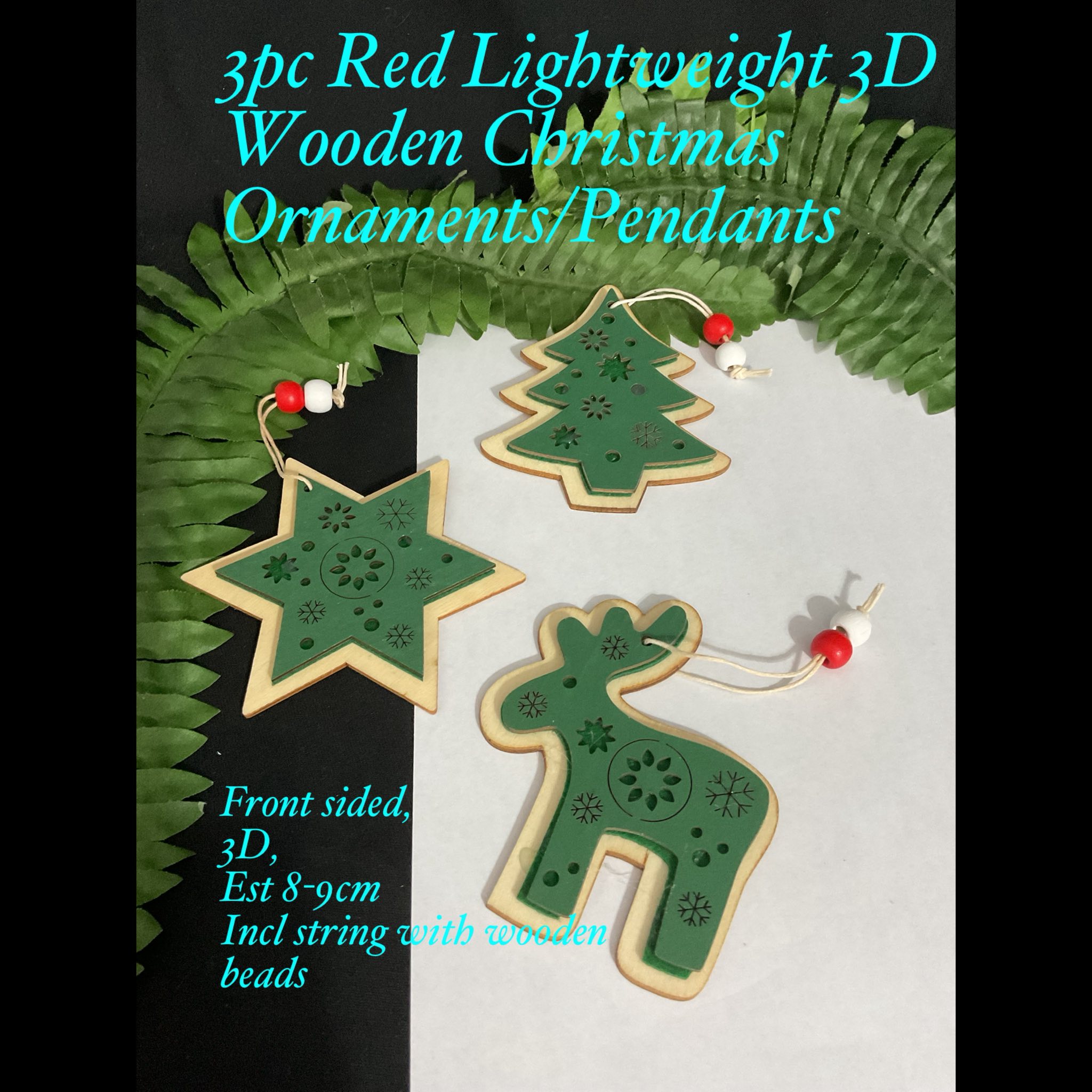 3pc Green Light weight Wooden Christmas Ornaments/ pendants