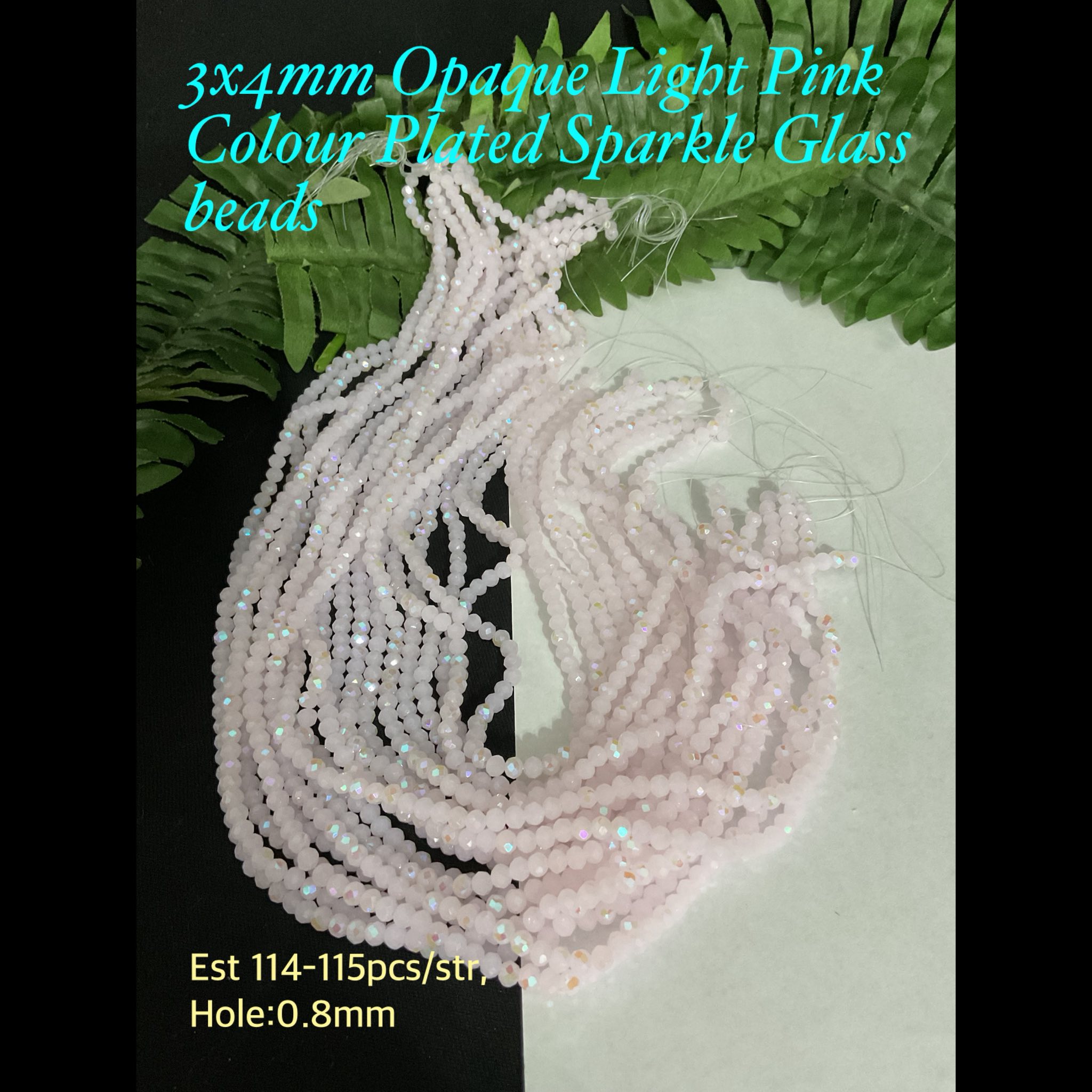 3x4mm Opaque Light Pink Colour Plated Sparkle glass beads (est 114-115pcs)