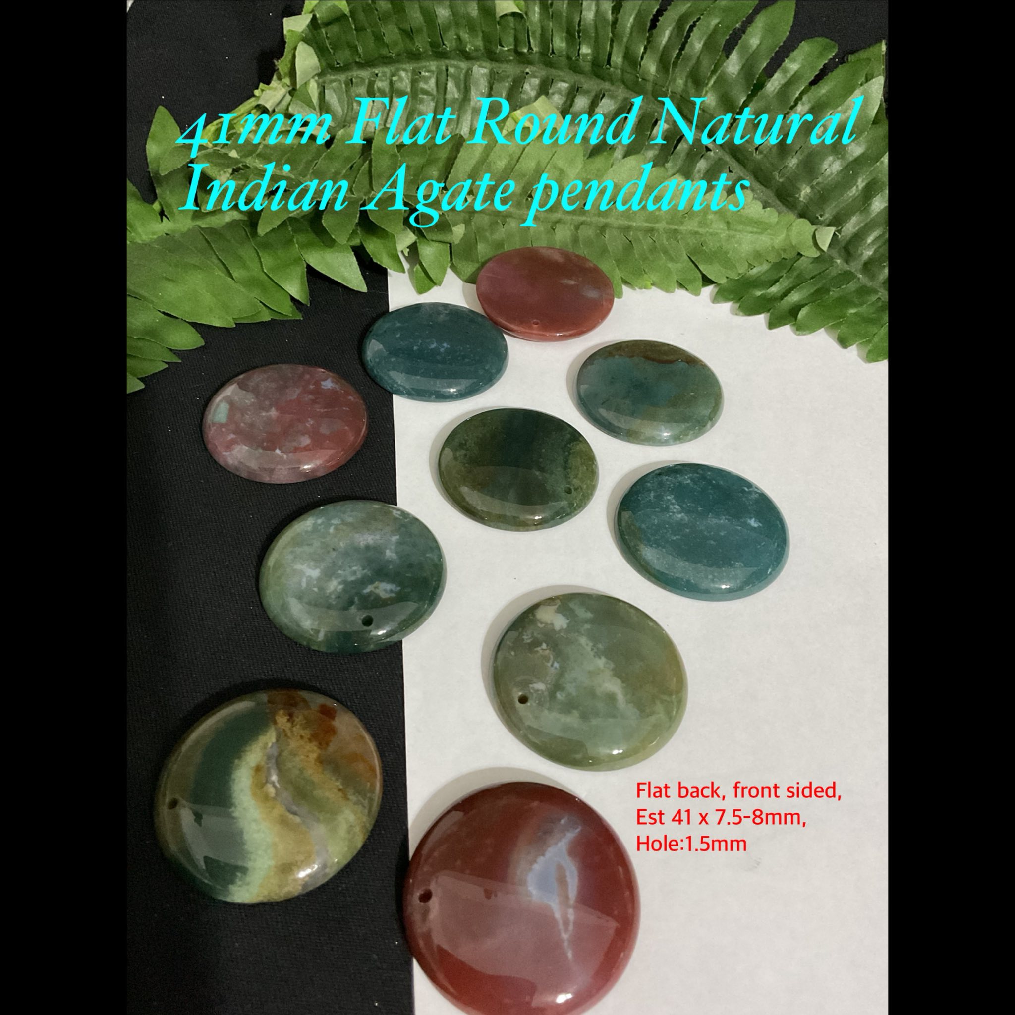 41mm Flat Round Natural Indian Agate Pendants
