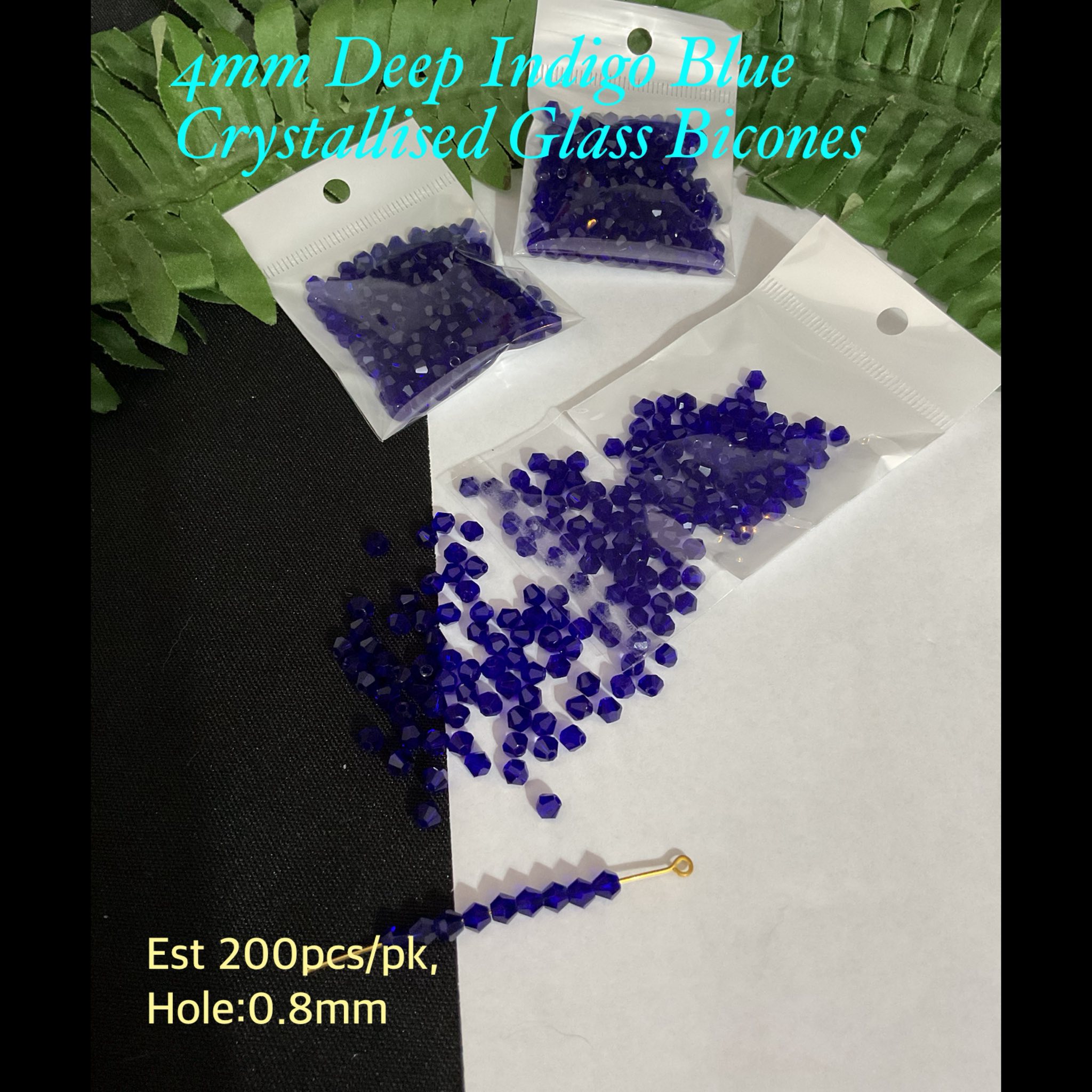 4mm Deep Indigo Blue Crystallised Sparkle Glass bicones (est 200pcs)