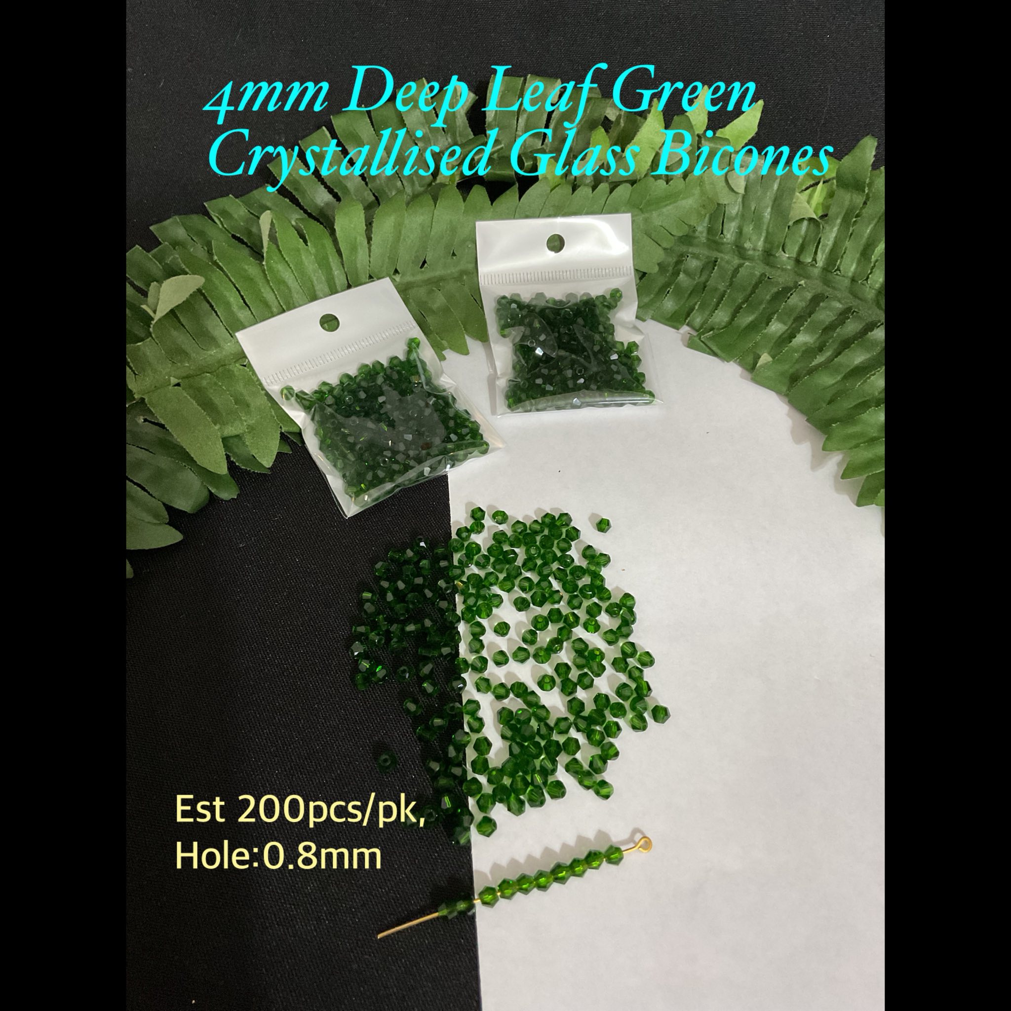 4mm Deep Leaf Green Crystallised Sparkle Glass bicones (est 200pcs)
