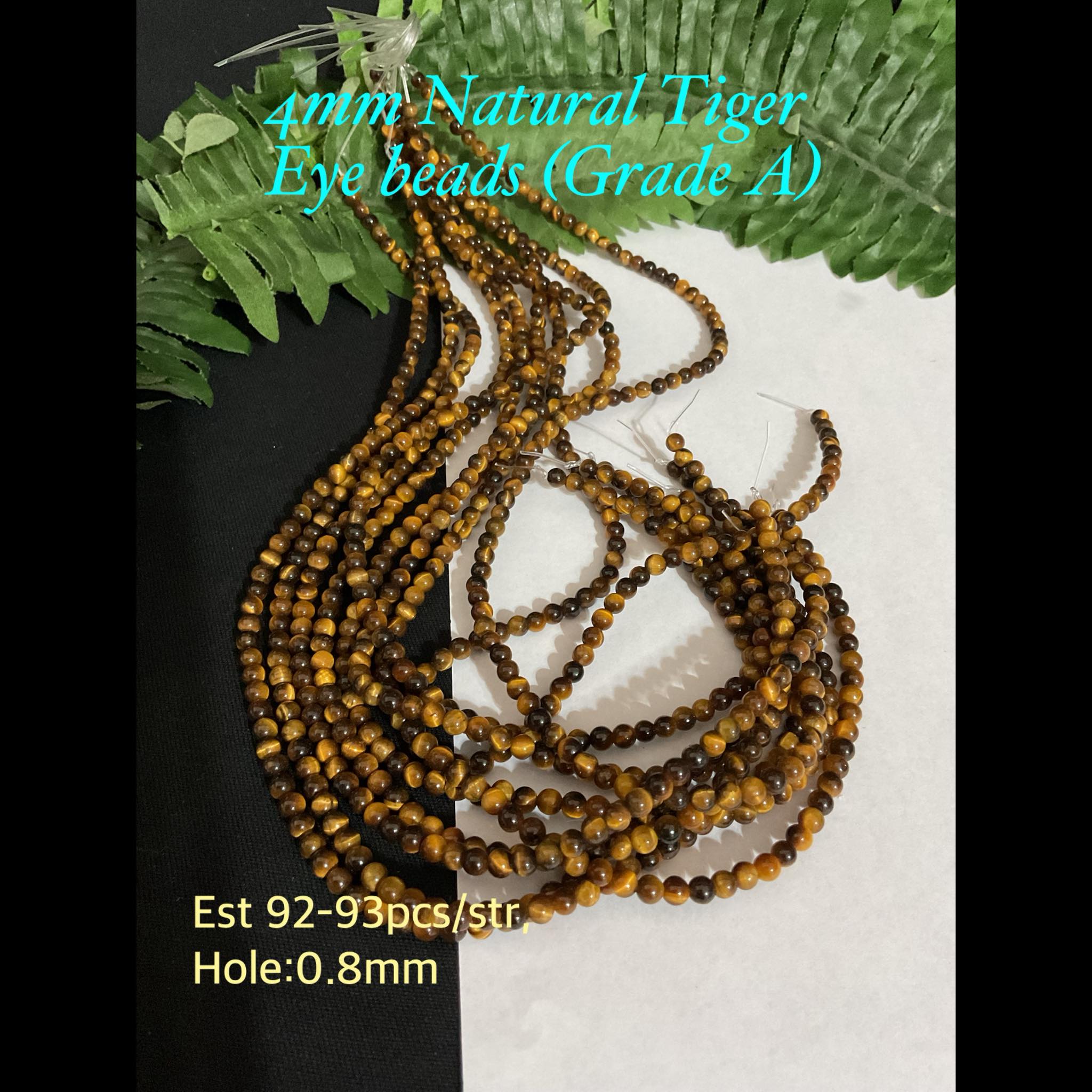 4mm Natural Tiger Eye beads (Grade A, est 92-93pcs)