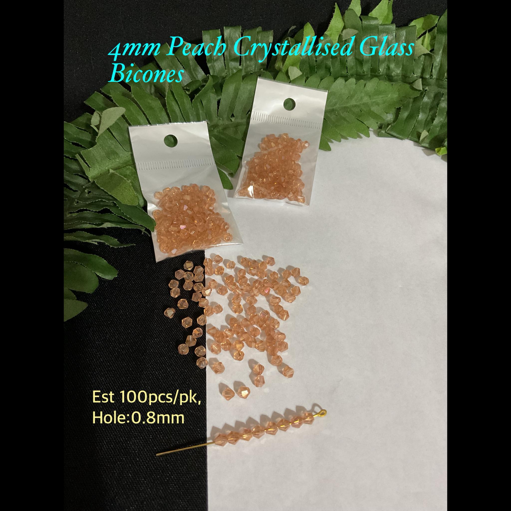 4mm Peach Crystallised Sparkle Glass bicones (est 100pcs)