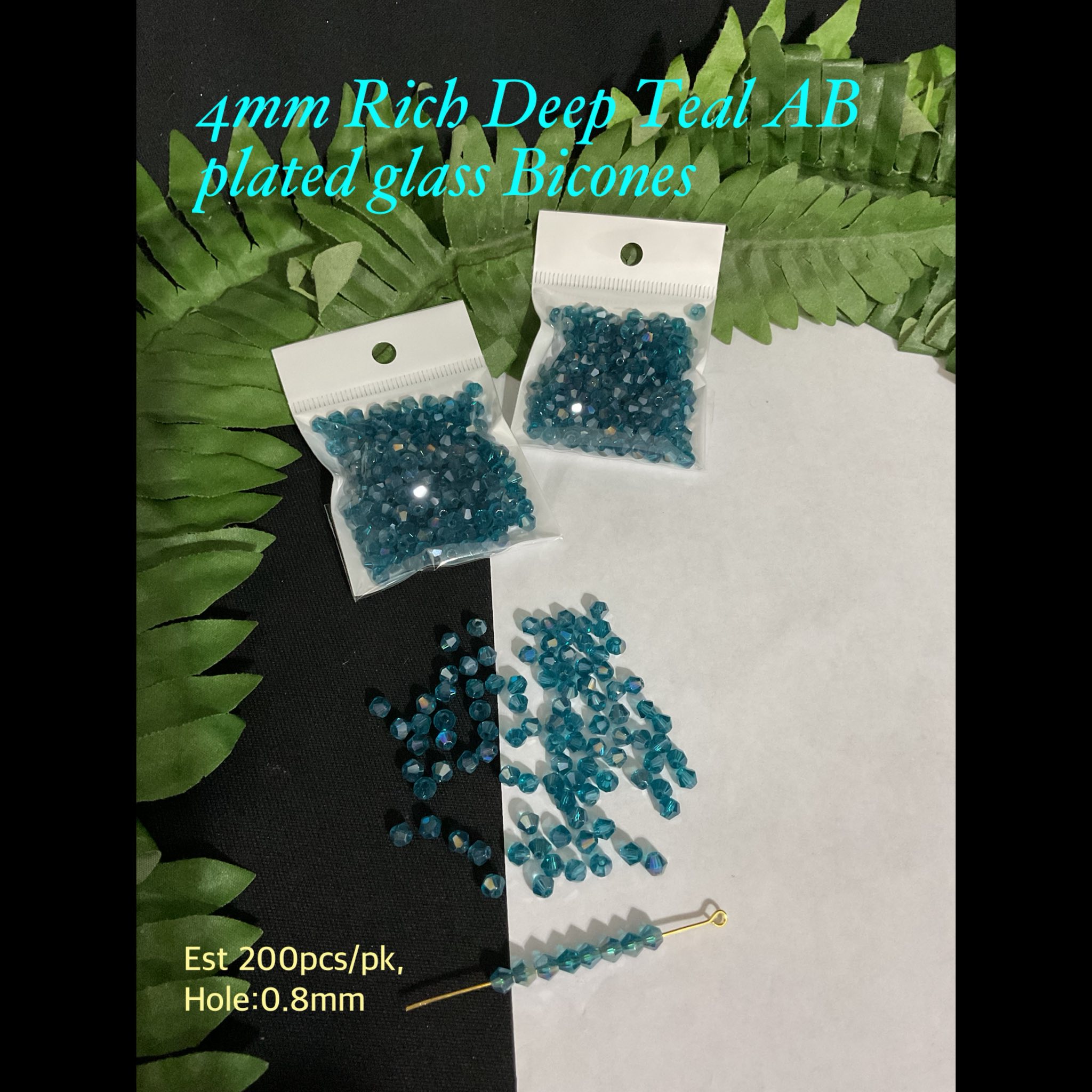 4mm Rich Deep Teal AB Glass bicone beads (est 200pcs)
