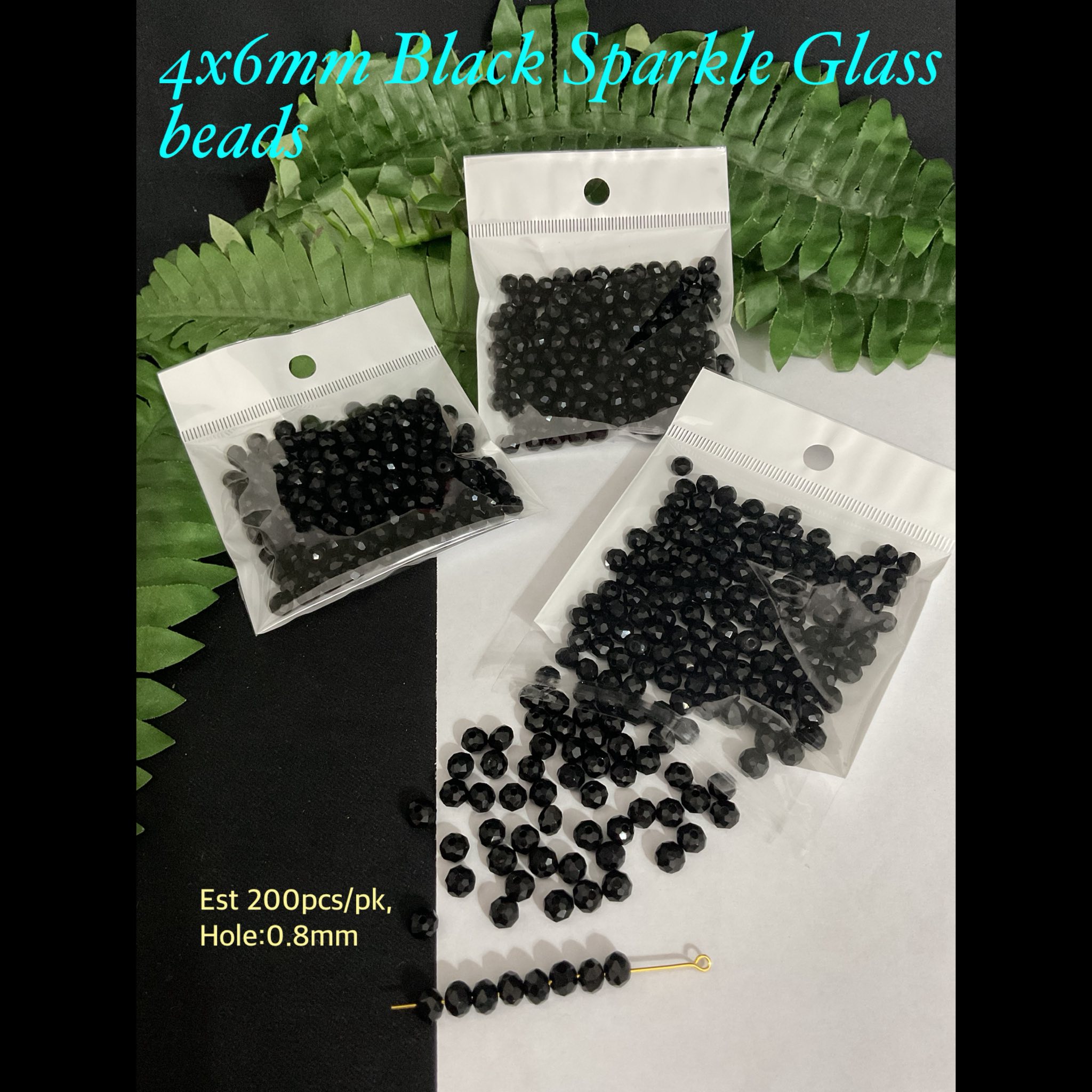 4x6mm Black Sparkle glass beads (est 200pcs)
