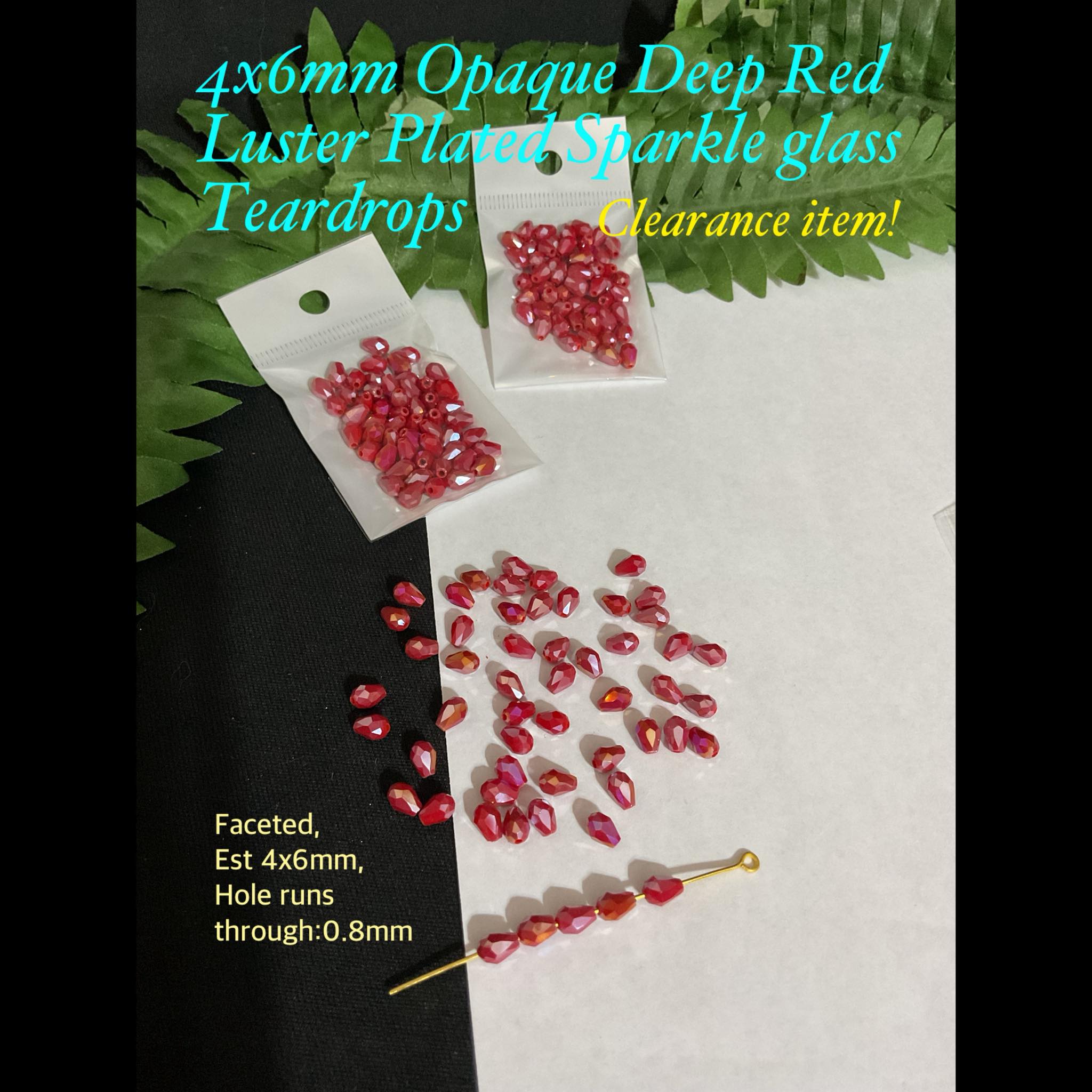 4x6mm Opaque Deep Red Faceted Glass Teardrop beads (52-54pcs)