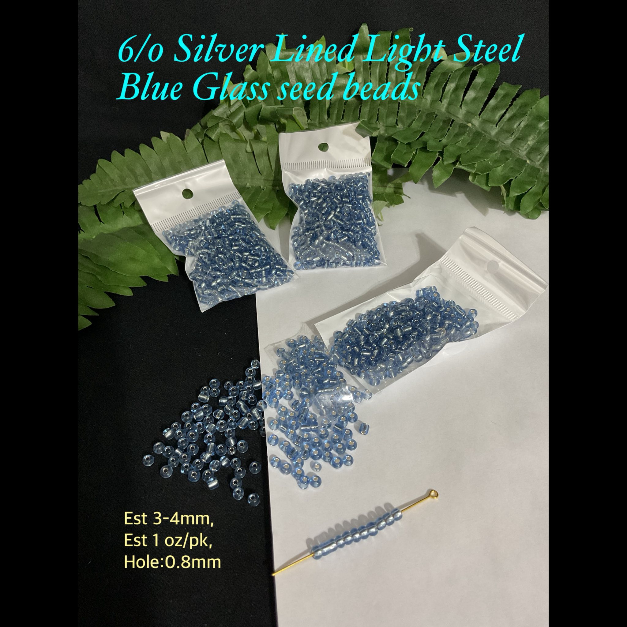 6/0 Silver Lined Light Steel Blue Glass Seed beads (est 1oz)