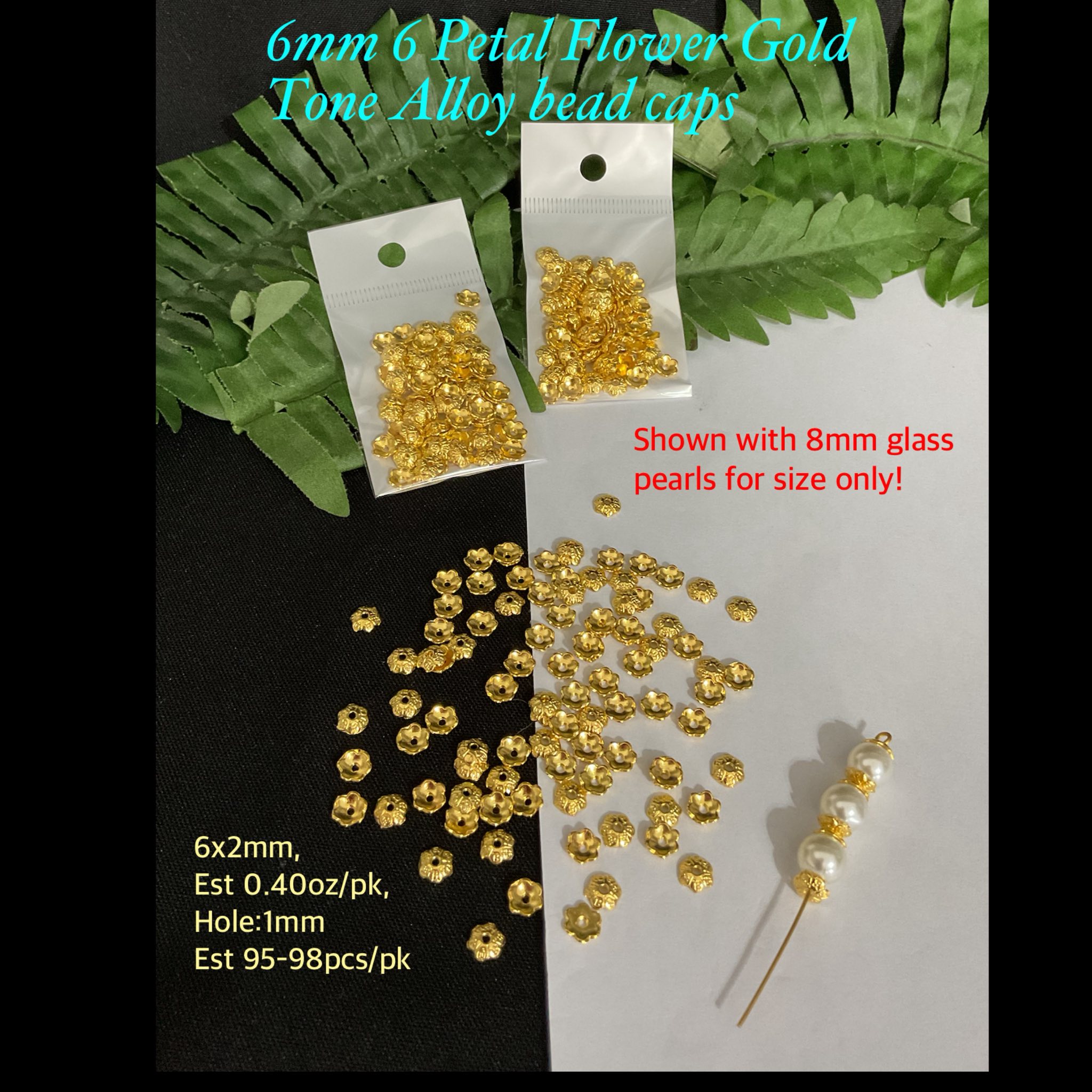 6mm 6 Petal Ornate Flower Gold tone bead caps (est 0.40oz)