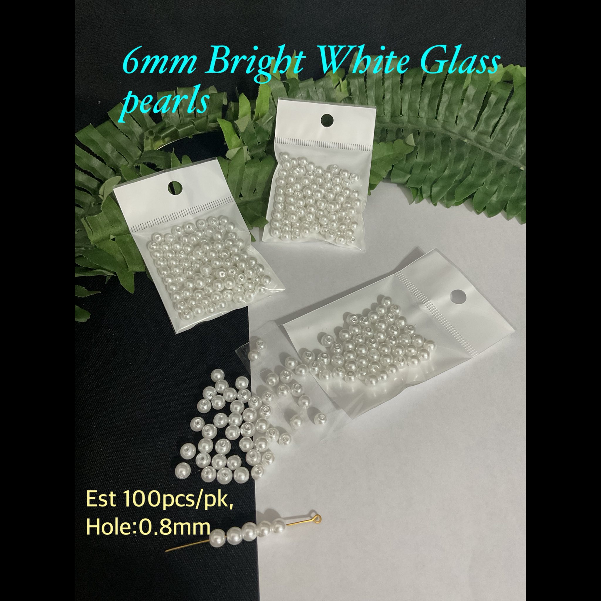 6mm Bright White glass pearls (est 100pcs)