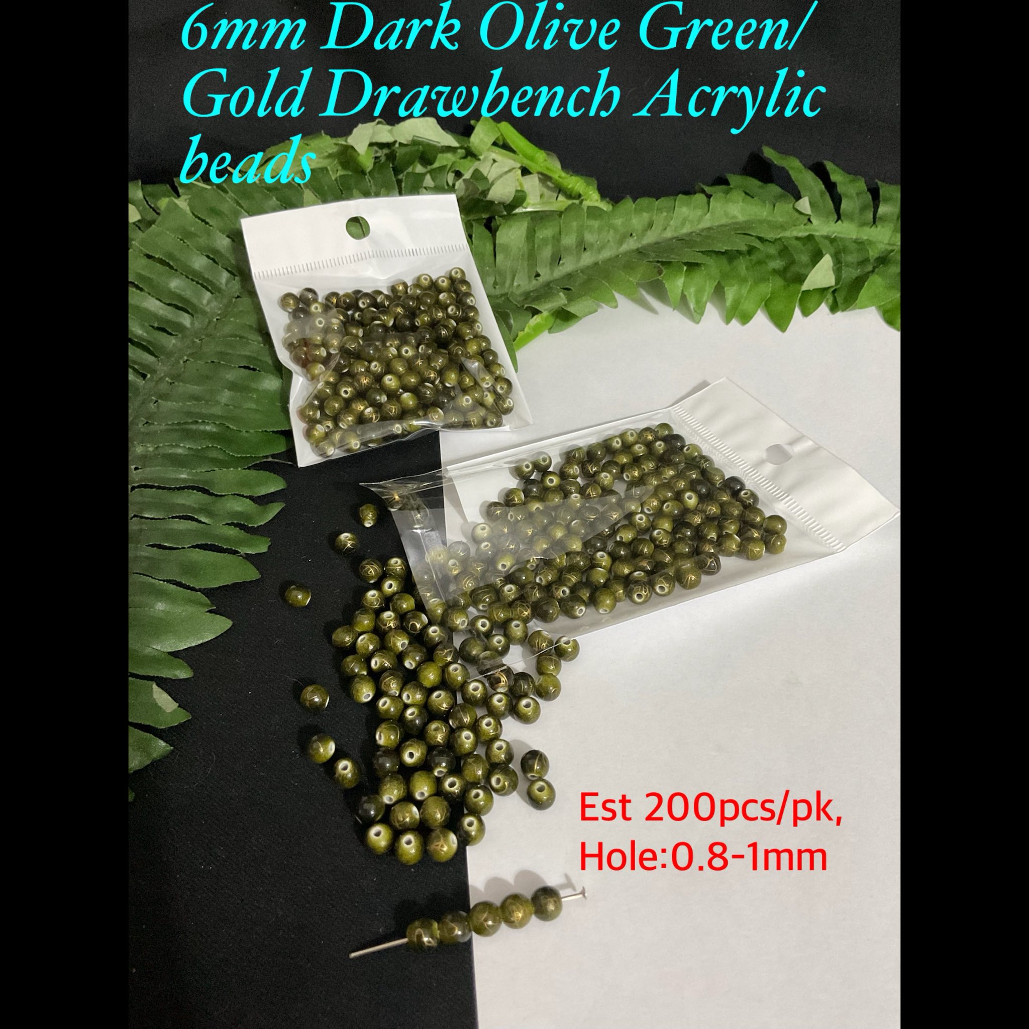 6mm Dark Olive Green/Gold Drawbench Acrylic beads (est 200pcs)