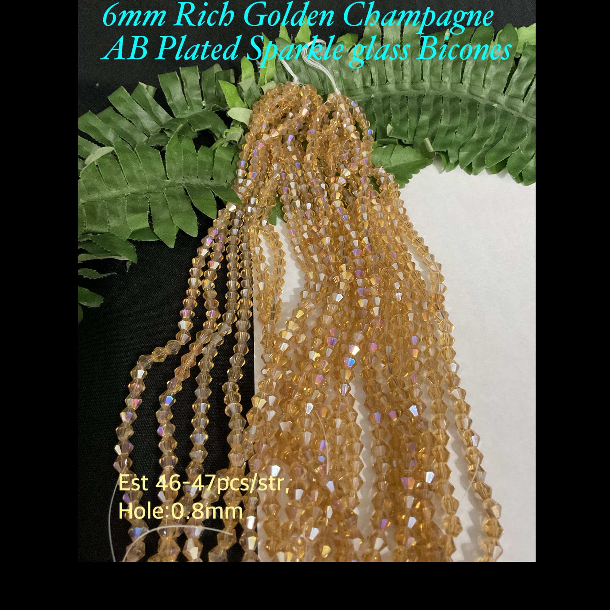 6mm Rich Golden Champagne AB Plated Sparkle Glass bicones (est 46-47pcs)