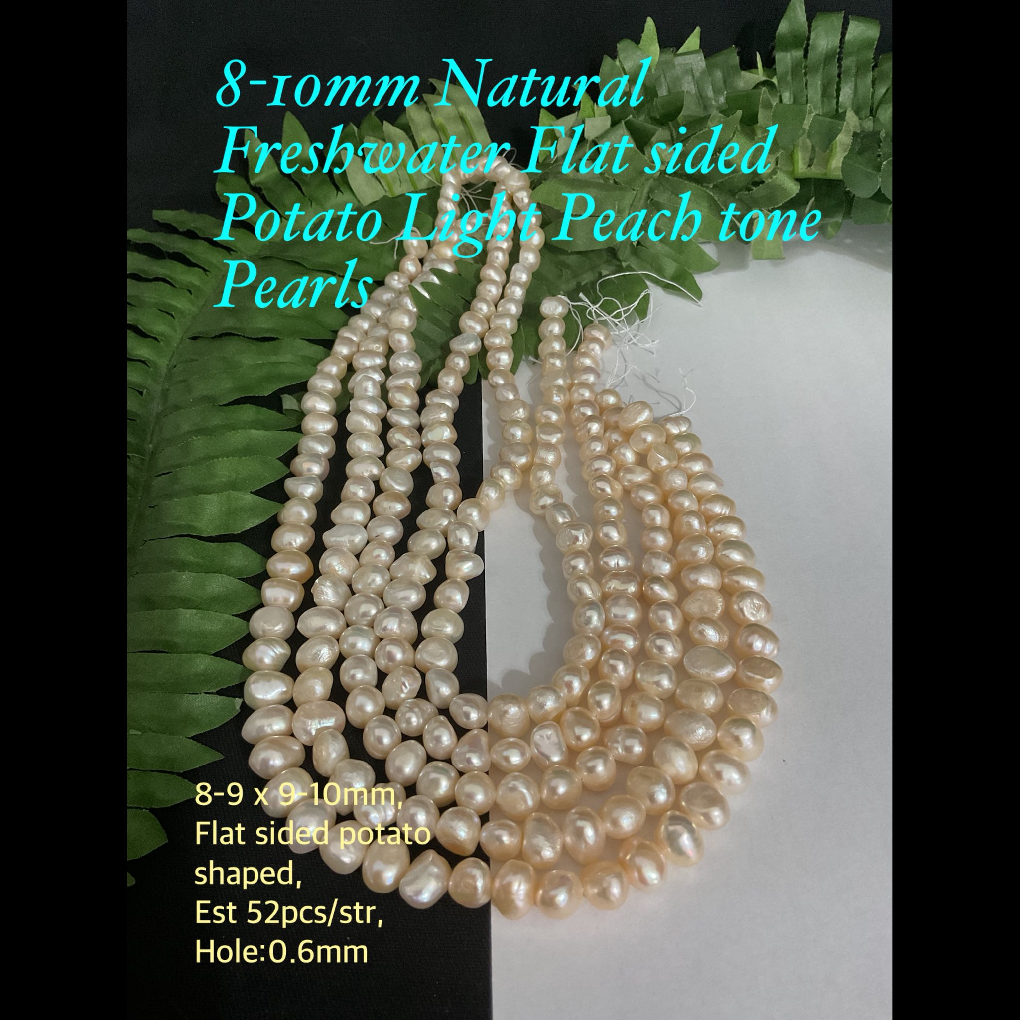 8-10mm Natural Freshwater Flat Sided Potato Light Peach Tone pearls (est 52pcs)
