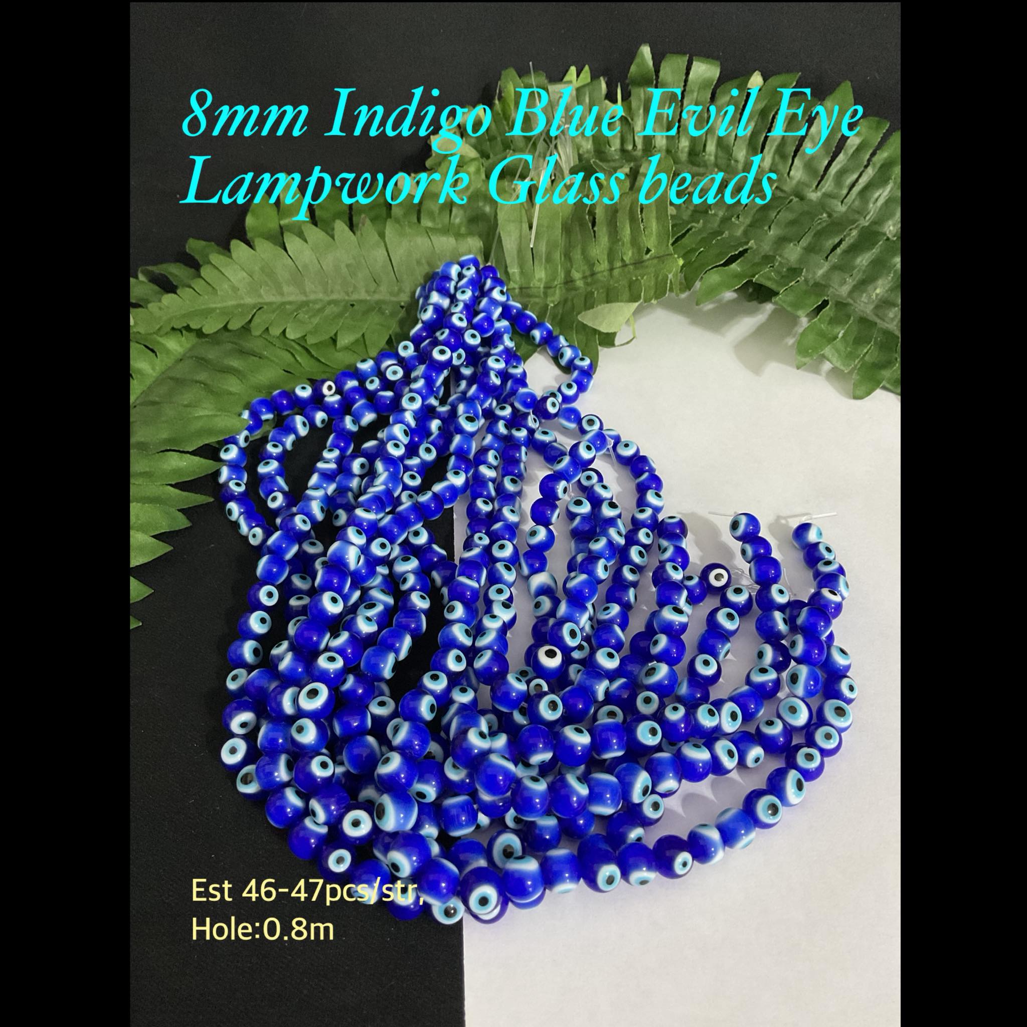 8mm Indigo Blue Evil Eye Lampwork Glass beads (est 46-47pcs)