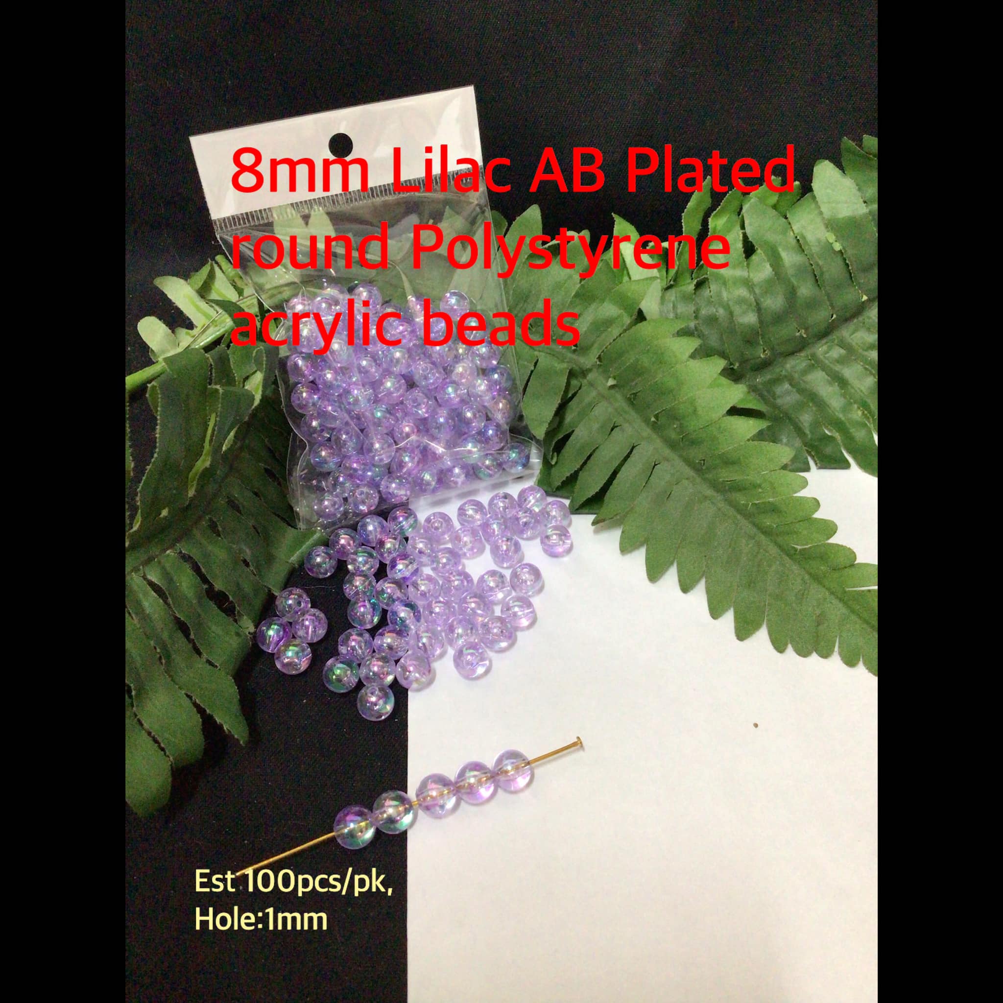 8mm Lilac AB Plated round Polystyrene acrylic beads (est 200pcs)